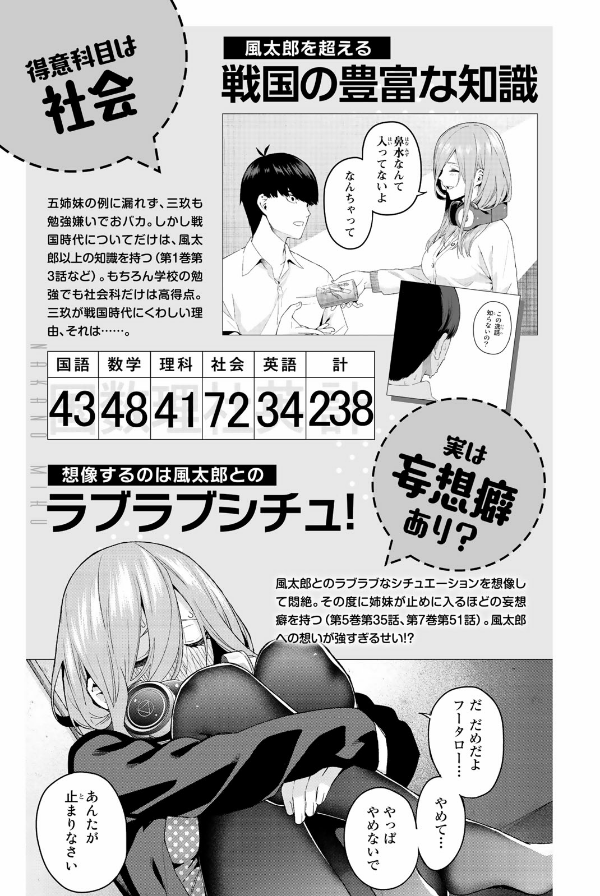 【五等分の花嫁】中野三玖「ディープ疑惑」真相はキャラブックにwww ※ネタバレ無し