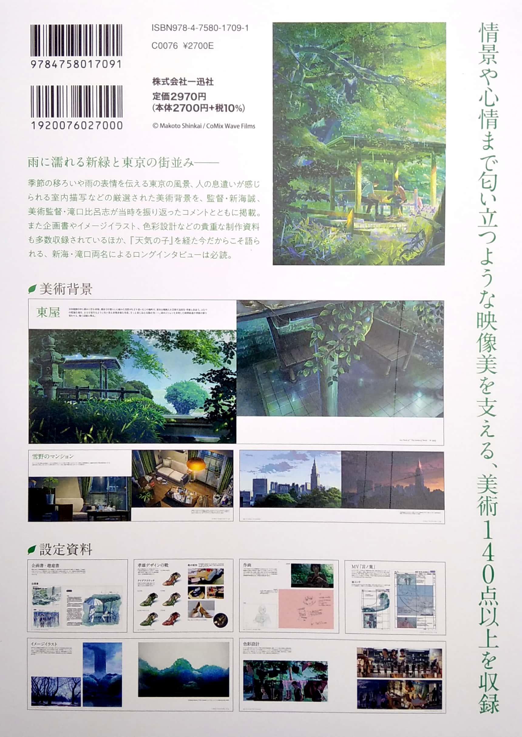 『天気の子』で再タッグを組んだ監督・新海誠と美術監督・滝口比呂志のとりおろしインタビューを収録! 140点を超える美術背景に加え、新海誠監督による企画書や絵コンテなど貴重なメイキング素材も圧倒的ボリュームで掲載。