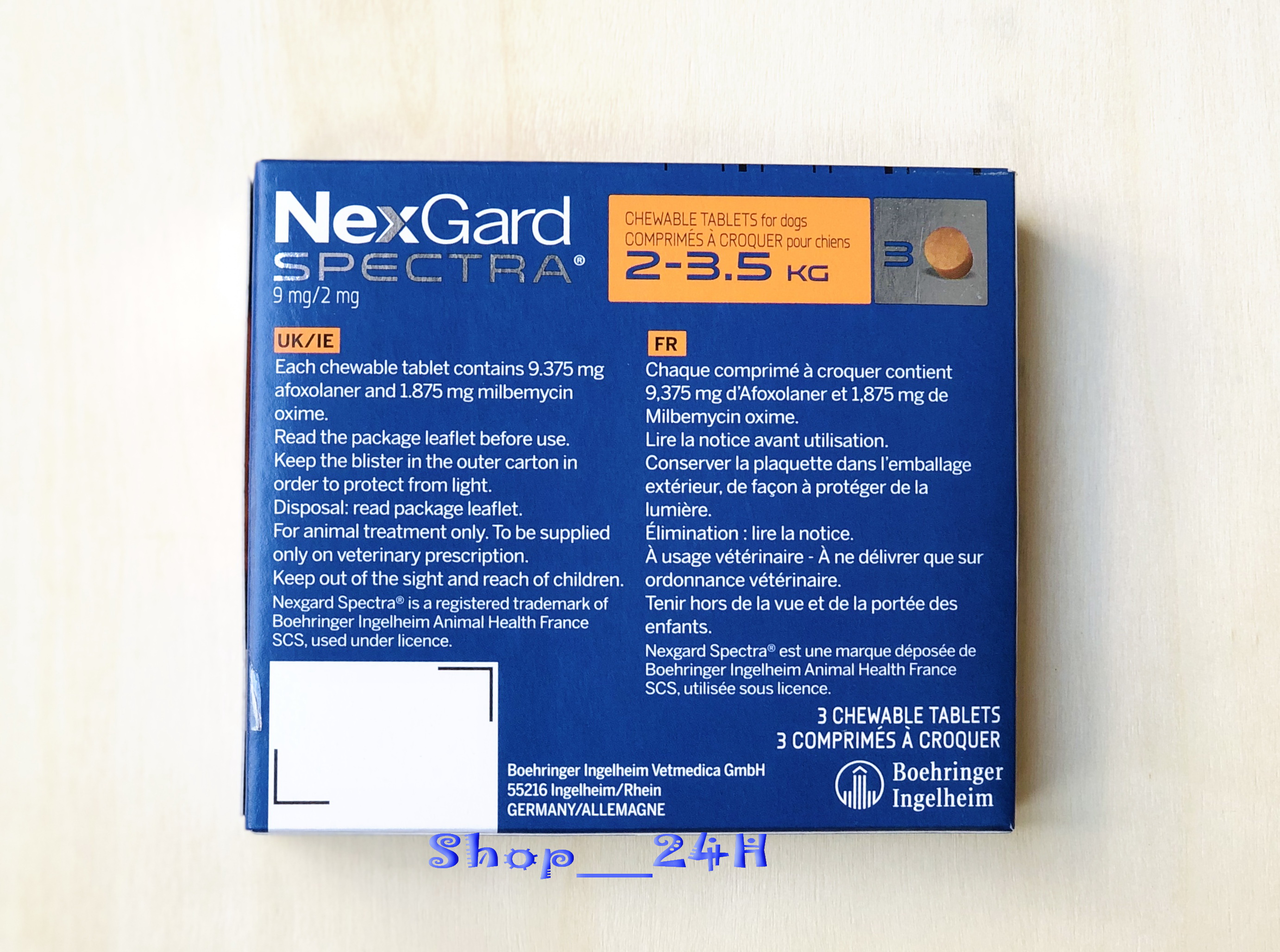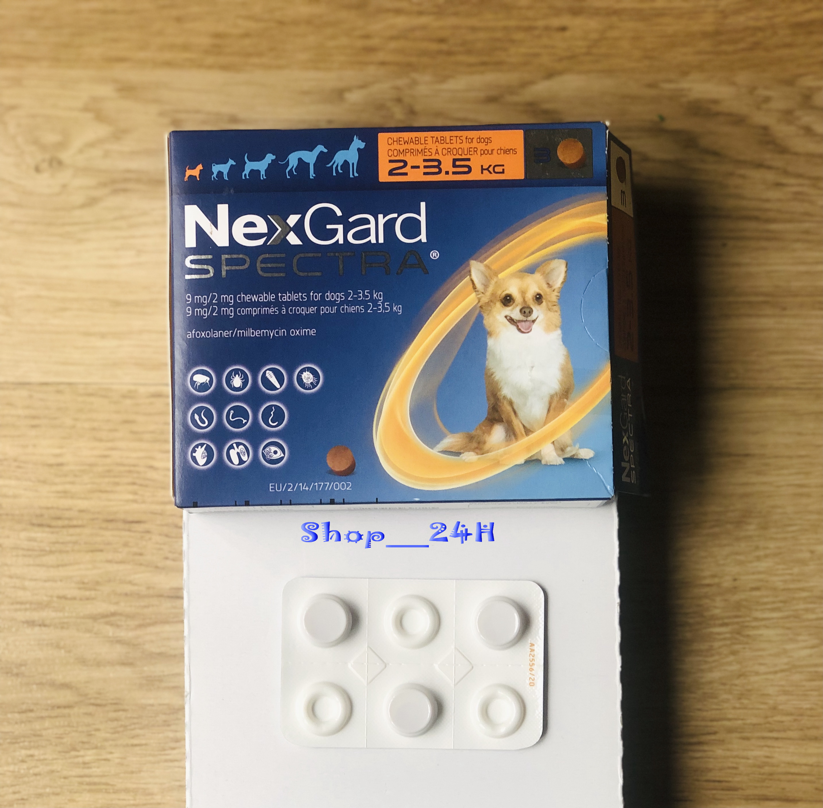 ✨1 hộp (3 viên) NexGard Spectra trị giun, ghẻ, viêm da, ve rận (chó 2 - 3,5kg)