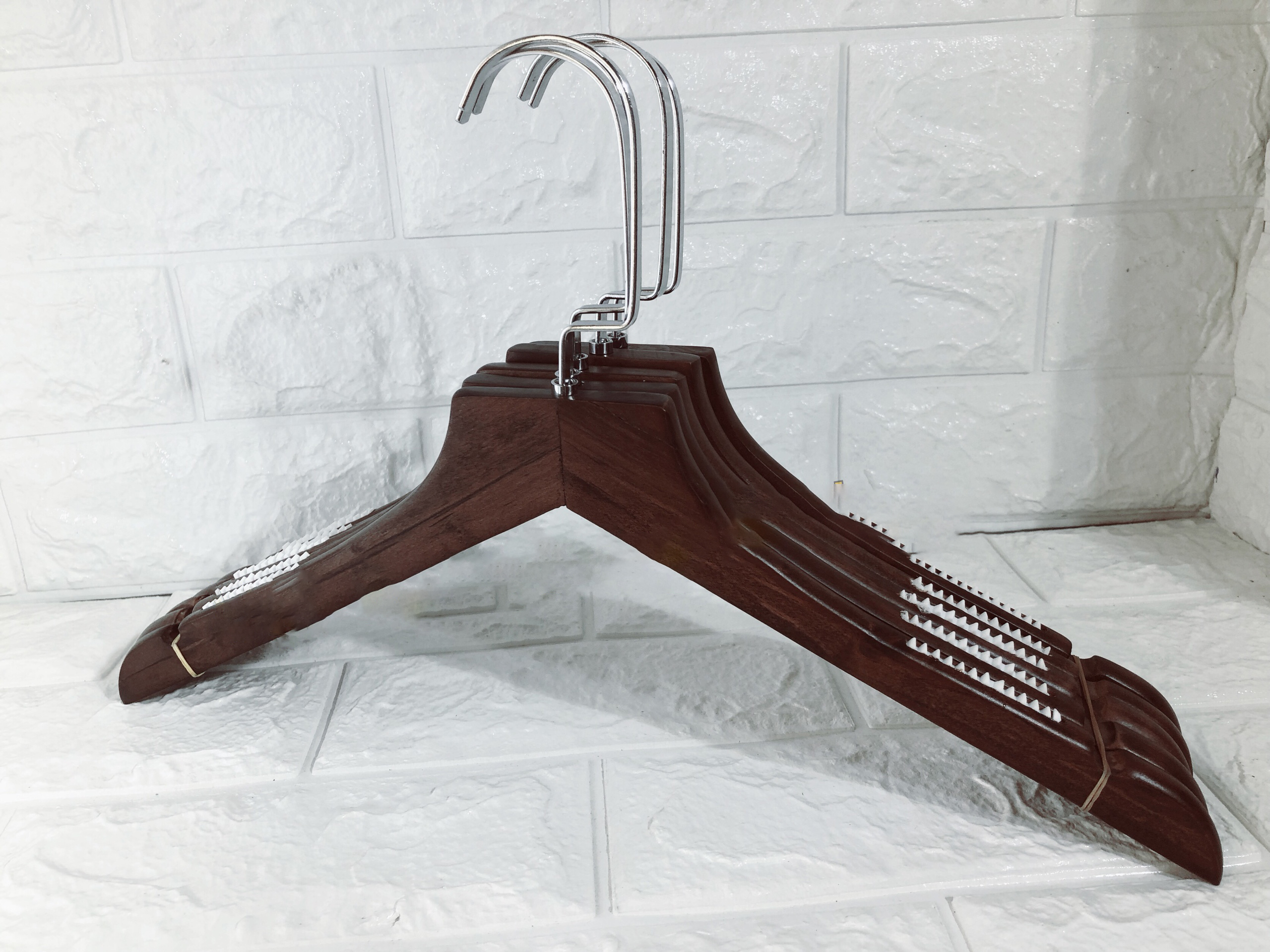 ✨10 Móc Gỗ Nâu Treo Quần Áo Có Vai Đệm 38cm