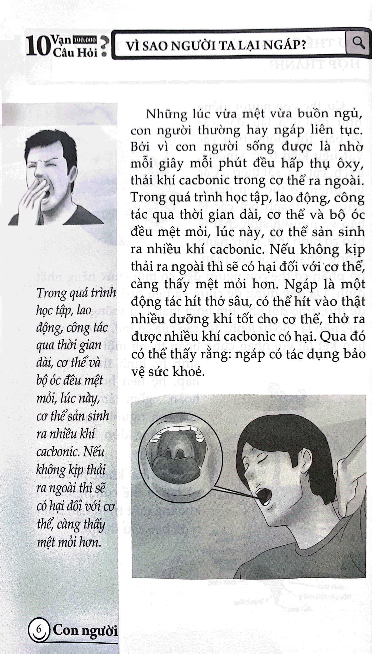 Mua tại Tiktok10 Vạn Câu Hỏi Vì Sao? - Con Người Tiếp nối những cuốn sách trong bộ sách 10 vạn câu hỏi vì sao?, trong cuốn 10 vạn câu hỏi vì sao ? – Con người các chuyên gia khoa học thường thức giàu kinh nghiệm, sử dụng ngôn ngữ dễ hiểu, kết hợp những hình ảnh minh họa sinh động, sẽ trả lời cho các em những câu hỏi thắc mắc về loài người như: vì sao mắt không sợ lạnh? vì sao người ta lại ngáp, cơ thể con người do bao nhiêu tế bào hợp thành?…