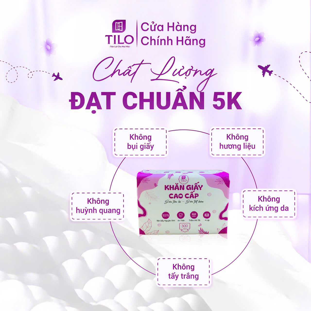 12 gói khăn giấy rút TiLo 300 tờ 4 lớp dai mềm mịn, an toàn, tiết kiệm Bạn đang tìm kiếm khăn giấy rút tiện lợi, chất lượng cao sử dụng tiết kiệm? Bạn lo lắng về giấy kém an toàn, dễ rách, hay gây kích ứng da? Đừng lo lắng! Khăn Giấy Rút TiLo 300 tờ 4 lớp được làm từ 100% bột giấy nguyên sinh chính là giải pháp hoàn hảo cho mọi gia đình và văn phòng! TiLo – Nâng Tầm Trải Nghiệm Khăn Giấy Hàng Ngày Của Bạn! TiLo tự hào giới thiệu sản phẩm Khăn Giấy Rút 300 tờ 4 lớp – thiết kế đặc biệt để mang lại sự tiện ích tối đa và an toàn cho sức khỏe người dùng. Đây là sự lựa chọn lý tưởng cho mọi không gian, từ bàn ăn, phòng khách đến văn phòng làm việc.   Ưu Điểm Nổi Bật – "Chất Lượng Vượt Trội, Tiết Kiệm Tối Đa": Siêu Tiết Kiệm, Số Lượng Lớn: Mỗi gói chứa 300 tờ giấy, giúp bạn sử dụng lâu hơn, tiết kiệm chi phí mua sắm thường xuyên. Có sẵn quy cách đóng 12 gói/dây – lựa chọn cực kỳ kinh tế cho gia đình đông người, văn phòng, nhà hàng, quán ăn. Siêu Dai, Mềm Mịn Độc Đáo: Giấy 4 lớp dày dặn, mang đến độ dai bền vượt trội, khả năng thấm hút tối ưu. Công nghệ dập vân hai đầu cùng họa tiết chiếc lá không chỉ đẹp mắt mà còn tăng cường độ chắc chắn, giúp giấy không bị mủn hay rách ngay cả khi ướt. Chất liệu giấy mềm mại, dịu nhẹ và an toàn cho mọi loại da, kể cả làn da nhạy cảm nhất của trẻ nhỏ. An Toàn – Chuẩn 100% Bột Giấy Nguyên Sinh: TiLo cam kết sử dụng 100% bột giấy nguyên sinh, không pha trộn tạp chất. Đạt chứng nhận hợp quy, đảm bảo an toàn sức khỏe. Không bụi giấy, không chất tẩy trắng, không chứa huỳnh quang, không hương liệu, không gây kích ứng – an tâm sử dụng cho mọi mục đích. Kích Thước Tiện Dụng: Kích thước mỗi tờ 120 x 175mm, vừa vặn và tiện lợi cho mọi nhu cầu sử dụng hàng ngày.   Thông Tin Sản Phẩm Chi Tiết: Tên sản phẩm: Khăn Giấy Cao Cấp TiLo 300 Tờ 4 Lớp Số tờ/gói: 300 tờ Số lớp: 4 lớp Chất liệu: 100% bột giấy nguyên sinh Kích thước tờ: 120 x 175mm Công nghệ: Dập vân hai đầu, mặt in họa tiết chiếc lá Quy cách đóng gói: 12 gói/dây (Tối ưu cho mua sắm số lượng lớn) Hạn sử dụng: 05 năm (in rõ ràng trên bao bì) Sản xuất tại: Việt Nam Chứng nhận: Đạt chứng nhận hợp quy, đảm bảo an toàn sức khỏe.   Đừng bỏ lỡ cơ hội sở hữu Khăn Giấy Rút TiLo 300 Tờ 4 Lớp – sự kết hợp hoàn hảo giữa chất lượng vượt trội và khả năng tiết kiệm tối đa! Trải nghiệm ngay sự khác biệt!