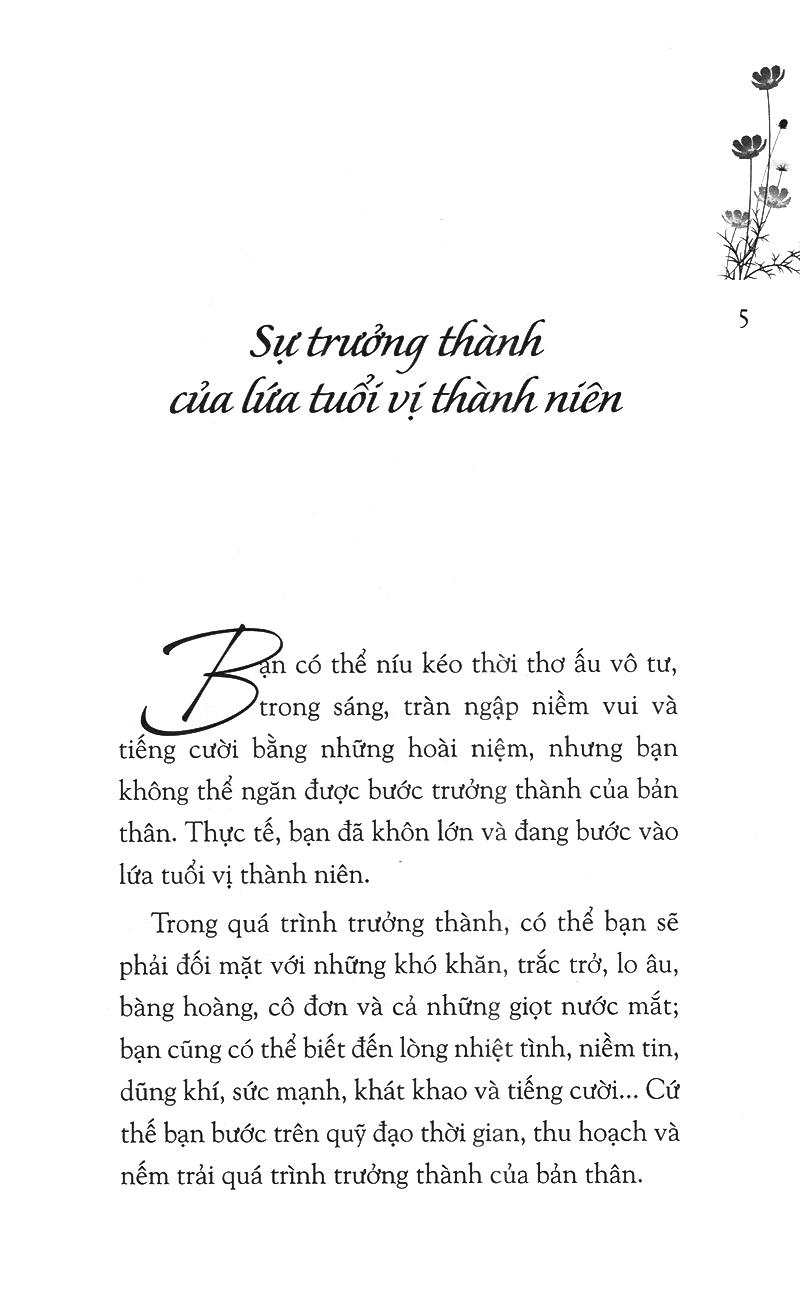 Hãy cảm nhận những trải nghiệm mà cuộc sống ban tặng, điều đó sẽ làm cho cuộc đời của các bạn trẻ trở nên dạn dày, sâu sắc, đồng thời cũng gợi cho các bạn suy nghĩ một cách lý tính hơn về cuộc sống. Phải trải qua khó khăn các bạn mới có thể minh mẫn, thấu hiểu và phát hiện được nhiều diều mới mẻ, Chỉ có người minh mẫn, thấu hiểu mới có thể có được cuộc sống tuyệt vời và sự sống cũng vì thế sinh động hơn.