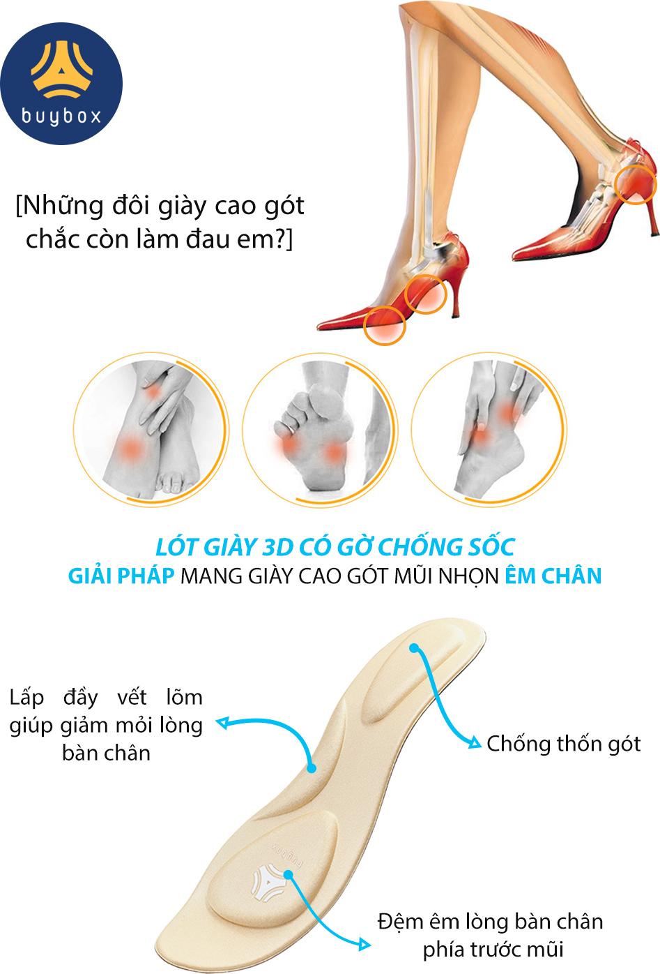 SỬ DỤNG LÓT GIÀY CAO GÓT MŨI NHỌN 4D CÓ GỜ GIẢM SỐC CỦA buybox SẼ BẢO VỆ ĐƯỢC BÀN CHÂN VÀ CẢ SỨC KHỎE CỦA BẠN!!!