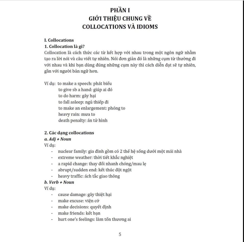 - PHẦN 1: giới thiệu chung về collocations và idioms, cũng như hệ thống một số collocations và idioms thường gặp.