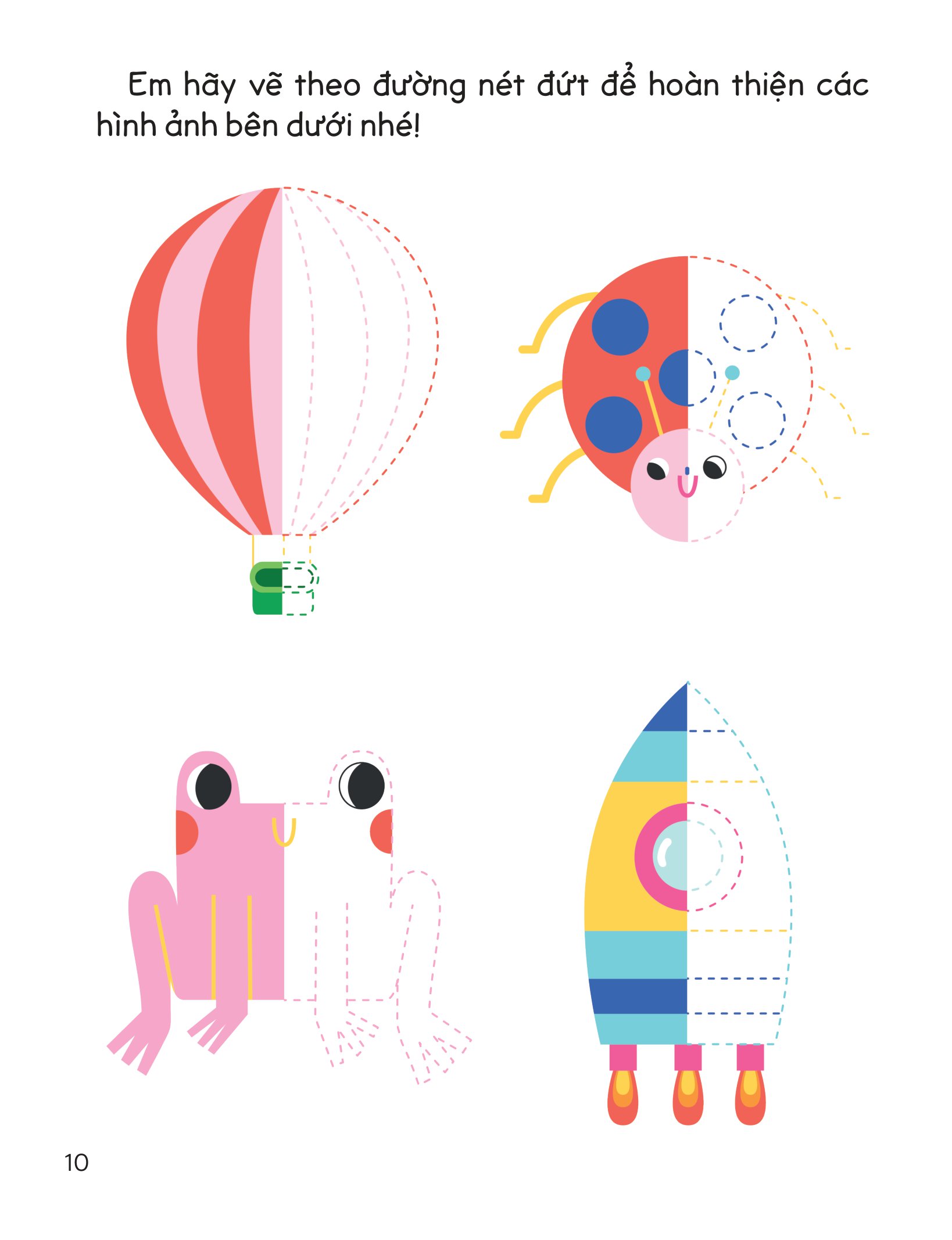 Trong cuốn sách này có hơn 25 bức tranh chưa hoàn chỉnh với các chấm tròn được đánh số thứ tự. Em hãy nối các số đó lại với nhau để hoàn thiện những bức