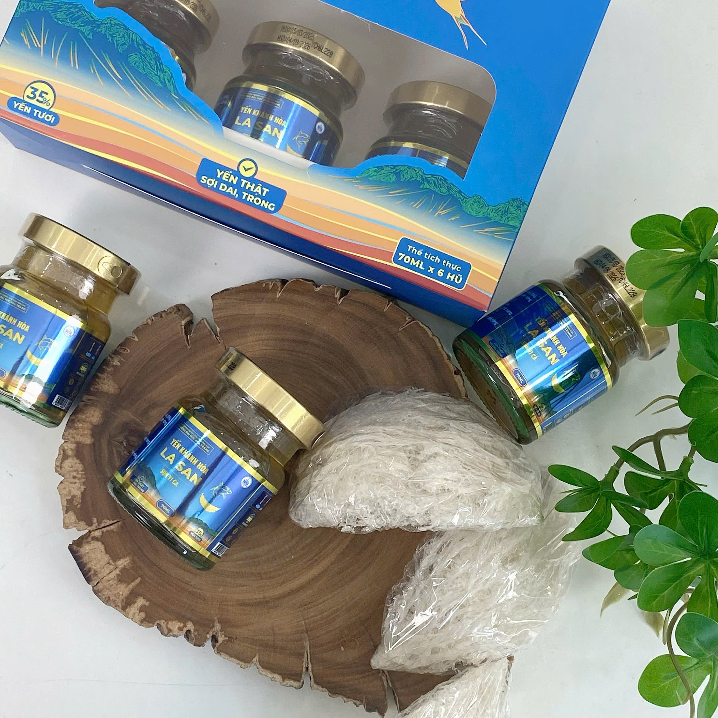 • Thành phần: Yến tươi tinh chế 35%, nước, chiết xuất sụn vi cá 15%, đường phèn, chất ổn định (E406, E401), hương yến tổng hợp.