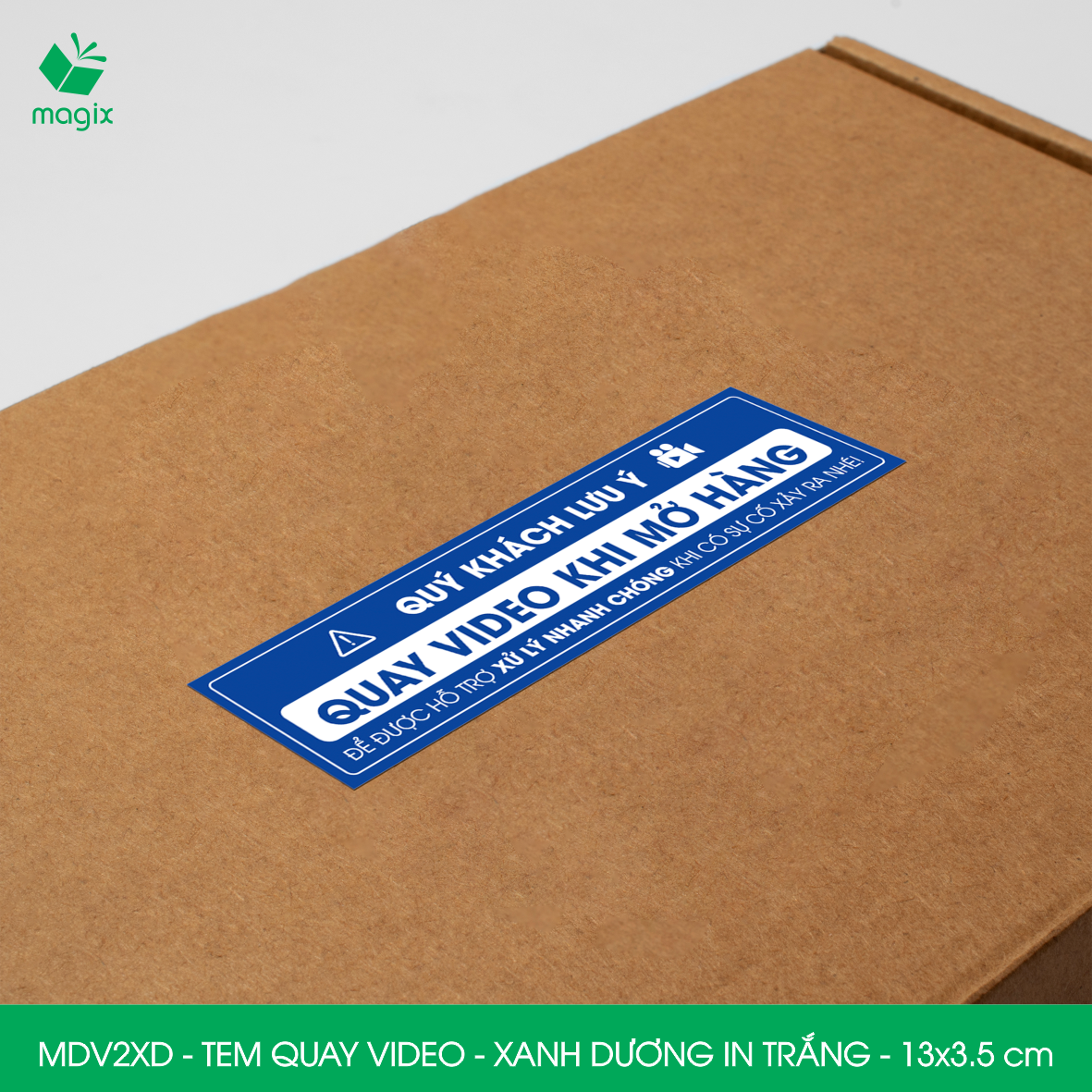 ✨500 Tem chú ý quay video trước khi mở hàng, decal dán hộp - 13x3,5 cm - Xanh dương in trắng - MDV2XD
