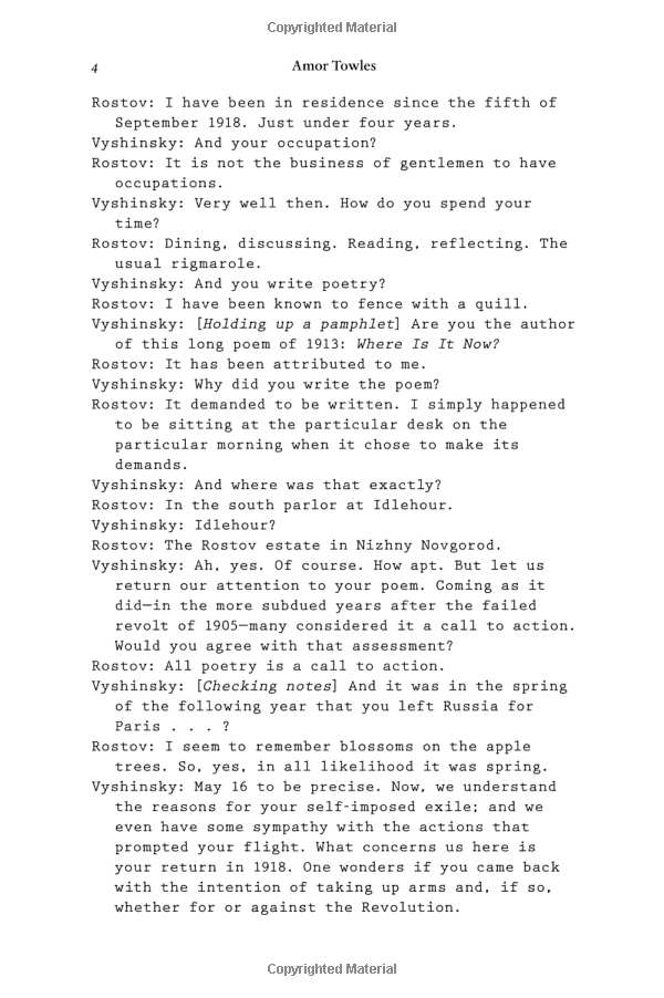 On 21 June 1922, Count Alexander Rostov - recipient of the Order of Saint Andrew, member of the Jockey Club, Master of the Hunt - is escorted out of the Kremlin, across Red Square and through the elegant revolving doors of the Hotel Metropol.