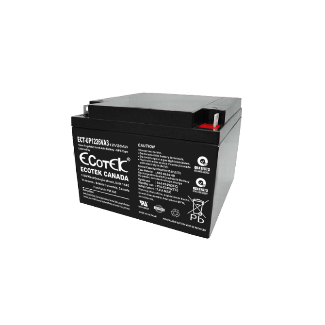 Ắc quy ECOTEK 12V-26Ah được thiết kế chuyên dụng cho bộ lưu điện, đảm bảo cung cấp nguồn DC ổn định cho UPS. Ắc quy được sản xuất trên qui trình chất lượng nghiêm ngặt,