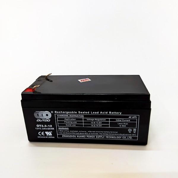 Ắc quy lưu điện UPS hiệu OUTDO OT3.3-12 (12V-3.3AH) Nhập khẩu: Trung Quốc Hãng sản xuất : Zhangzhou Huawei Power Supply Technology Co.,Ltd. Đặc tính : khô, kín khí Công suất : 12V - 3.3Ah