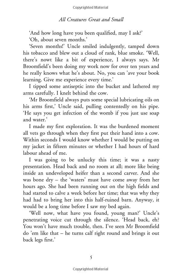 Fresh out of Glasgow Veterinary College, to the young James Herriot 1930s Yorkshire seems to offer an idyllic pocket of rural life in a rapidly changing world. But from his erratic new colleagues, brothers Siegfried and Tristan Farnon, to incomprehensible farmers, herds of semi-feral cattle, a pig called Nugent and an overweight Pekingese called Tricki Woo, James finds he is on a learning curve as steep as the hills around him. And when he meets Helen, the beautiful daughter of a local farmer, all the training and experience in the world can’t help him . . .