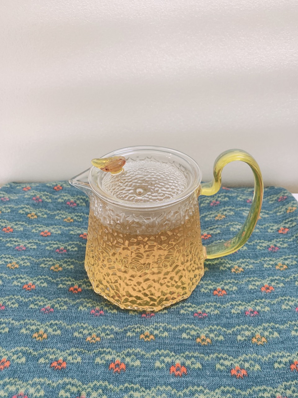 ẤM TRÀ THỦY TINH CÓ LÕI LỌC CHỊU NHIỆT NHIỆT CAO CẤP VÂN NHÁM QUAI VÀNG CRYSTAN 500ml