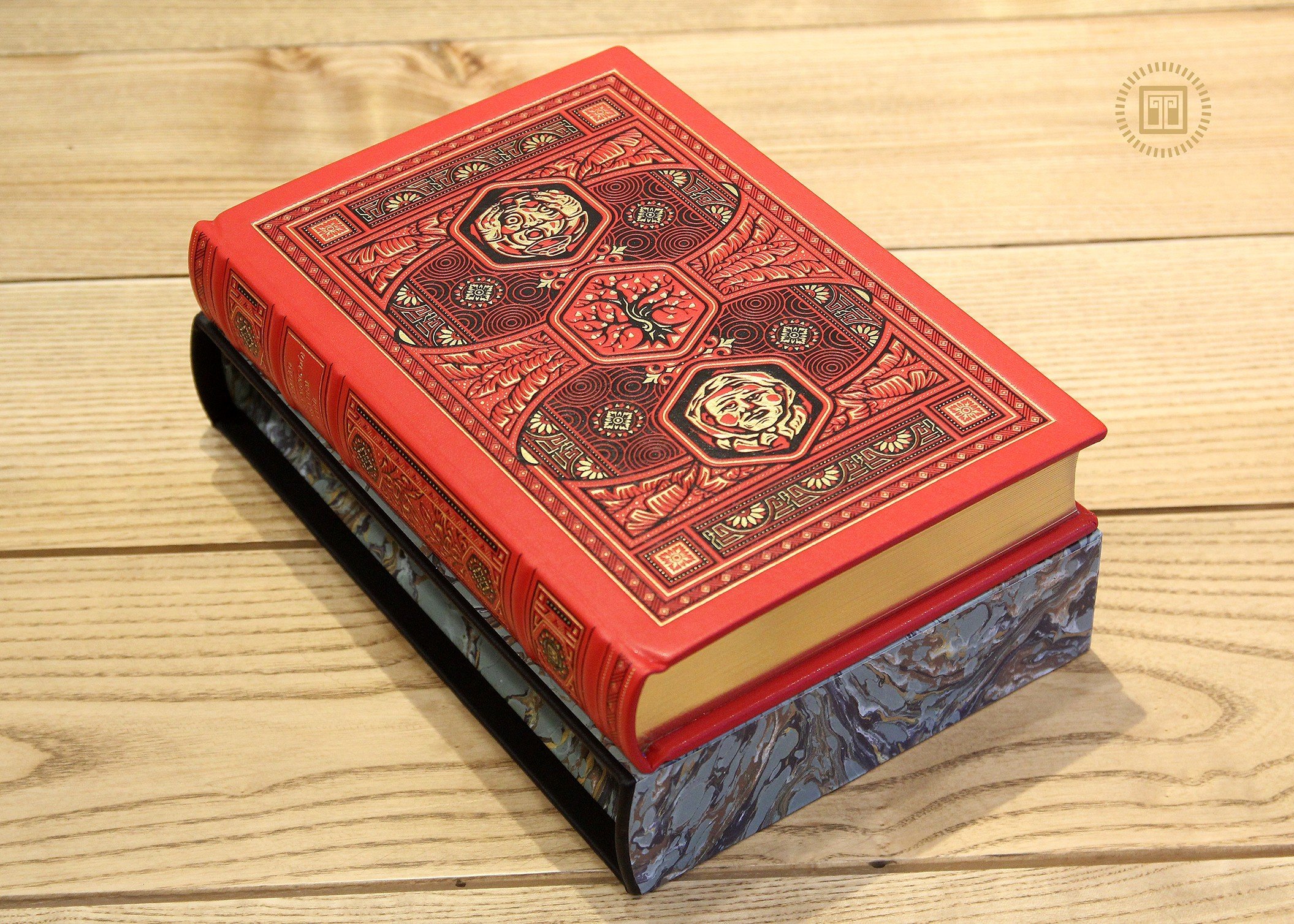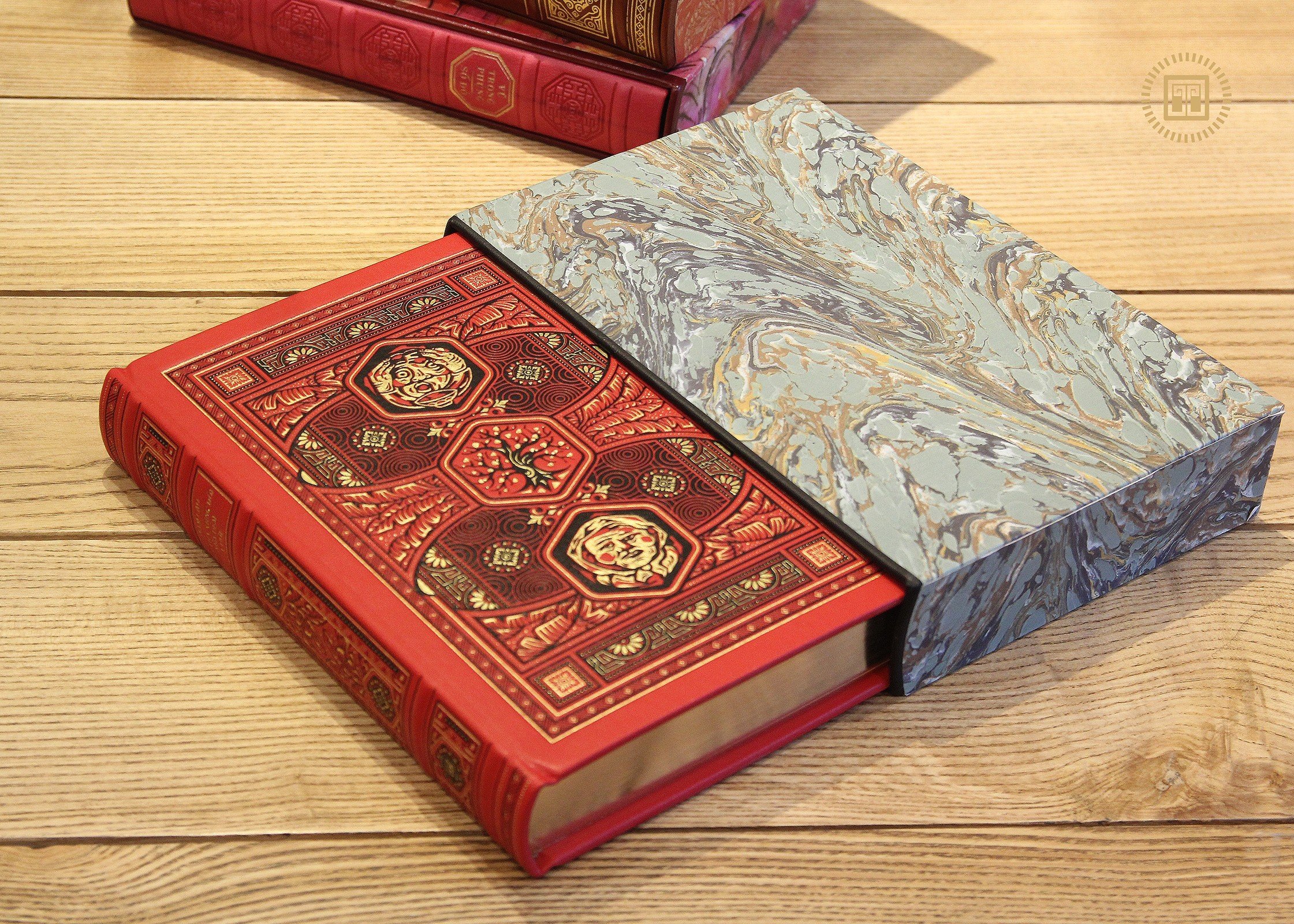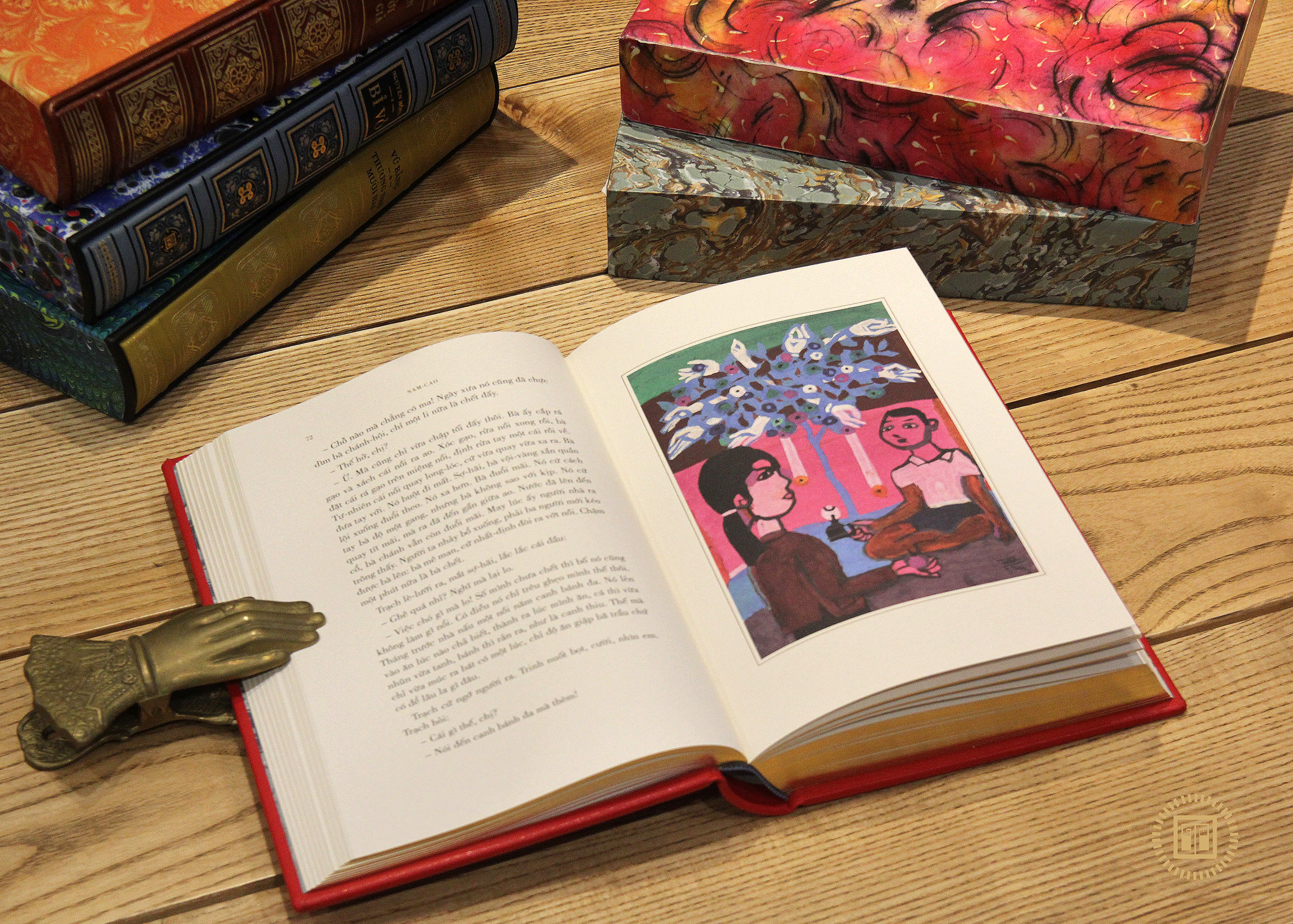 • Sách có hộp đựng bằng carton, hoa văn trang trí in thủy ấn.