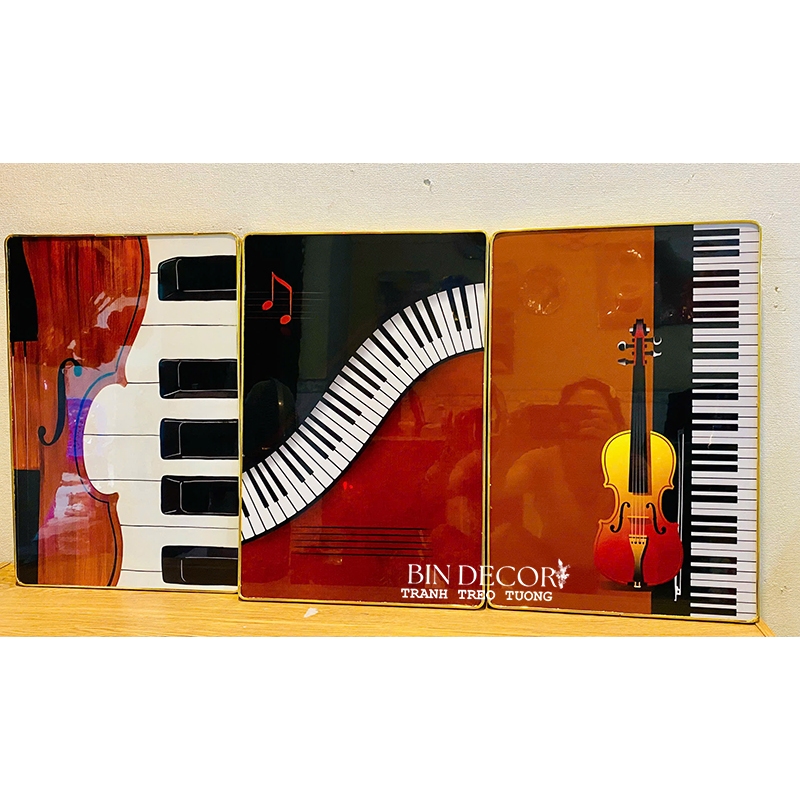 Tranh treo tường âm nhạc 24 - Kích thước của tranh : Kích thước : 25x35cmx3 tấm 30x45cmx3 tấm 40x60cmx3 tấm - Chất liệu : KIM SA - TRÁNG GƯƠNG - CANVAS - Khách hàng