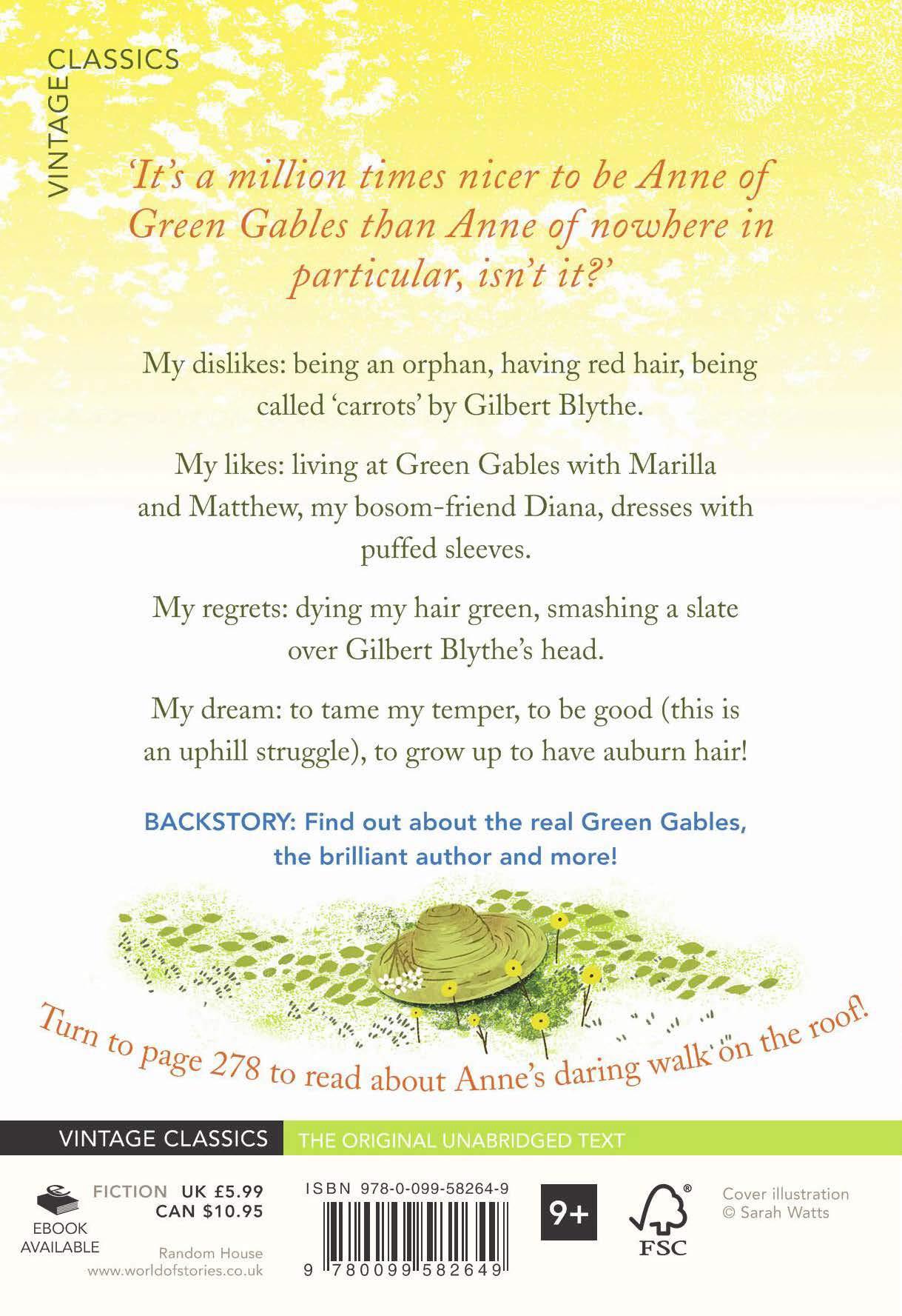 My dislikes: Being an orphan, having red hair, people twitting about my red hair, being called "carrots" by Gilbert Blythe. My likes: Living at the Green Gables with Marilla and Matthew Cuthbert, my bosom-friend Diana, dresses with puff sleeves, renaming Barry's pond the Lake of Shining Waters, coming top of the class. My regrets: Dyeing my hair green. Smashing a slate over Gilbert Blythe's head. My dream: To tame my temper. To be good (this is an uphill struggle). To grow up to have auburn hair!