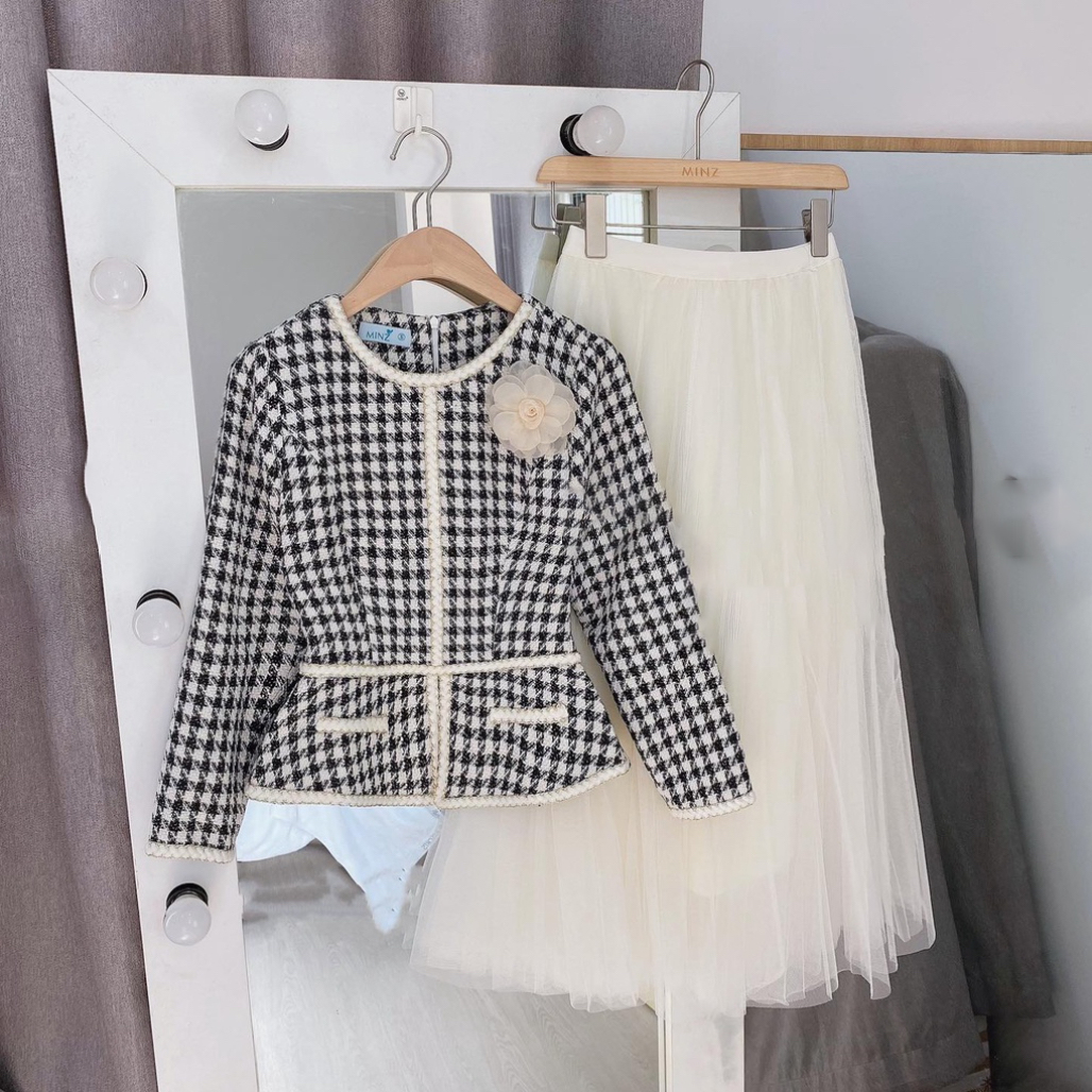 Áo khoác dạ Tweed dáng ngắn kẻ đen phong cách Hàn Quốc thanh lịch, trẻ trung - BD22S528