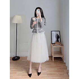 Hàng của Shop là hàng cao cấp, chất liệu dạ tweed dày dặn, 2 lớp, có lớp lót bên trong mặc không hề dặm ngứa, khó chịu. Vải được dệt xen kẽ giữa các sợi đen và trắng là các sợi kim tuyến cao cấp, khi mặc bắt sáng sẽ vô cùng sang, khác hẳn hàng loại rẻ tiền loại 2, loại 3, chỉ dệt có sợi đen và trắng thôi Khách nha.