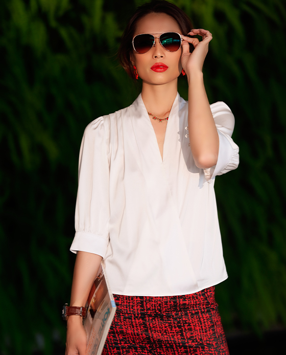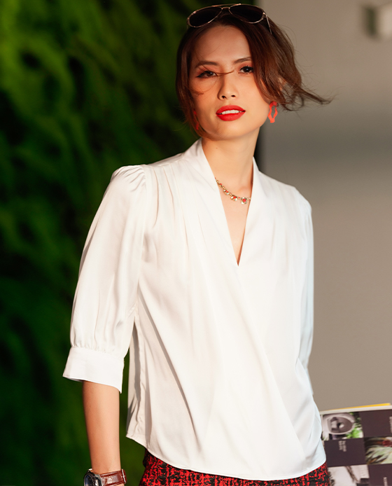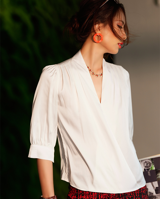 Áo Kiểu Thời Trang Eden Cổ V Tà Đắp Chéo - ASM082