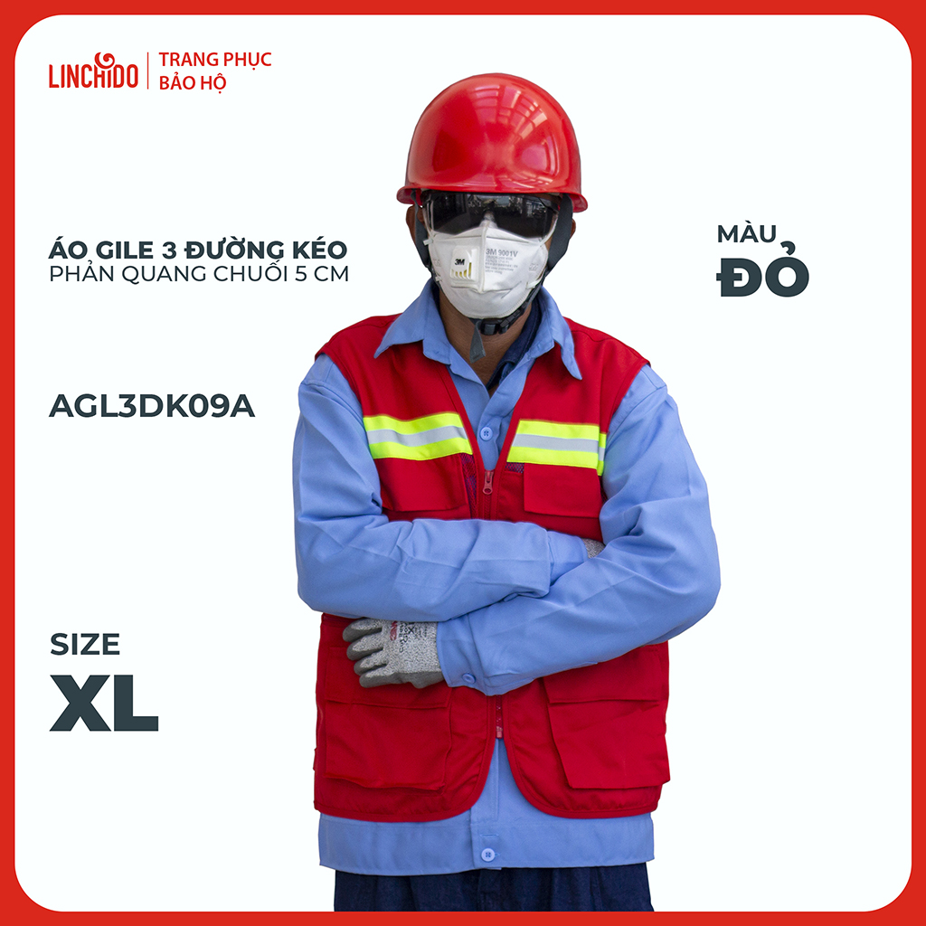 ✨Áo Gile Kỹ Sư, Giám Sát Công Trình, Bảo Hộ Lao Động, 3 Đường Kéo, 6 Túi - Mã AGL3DK09A