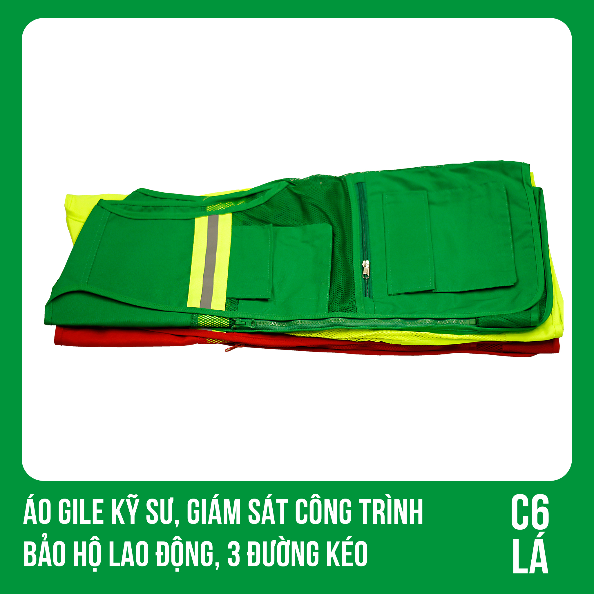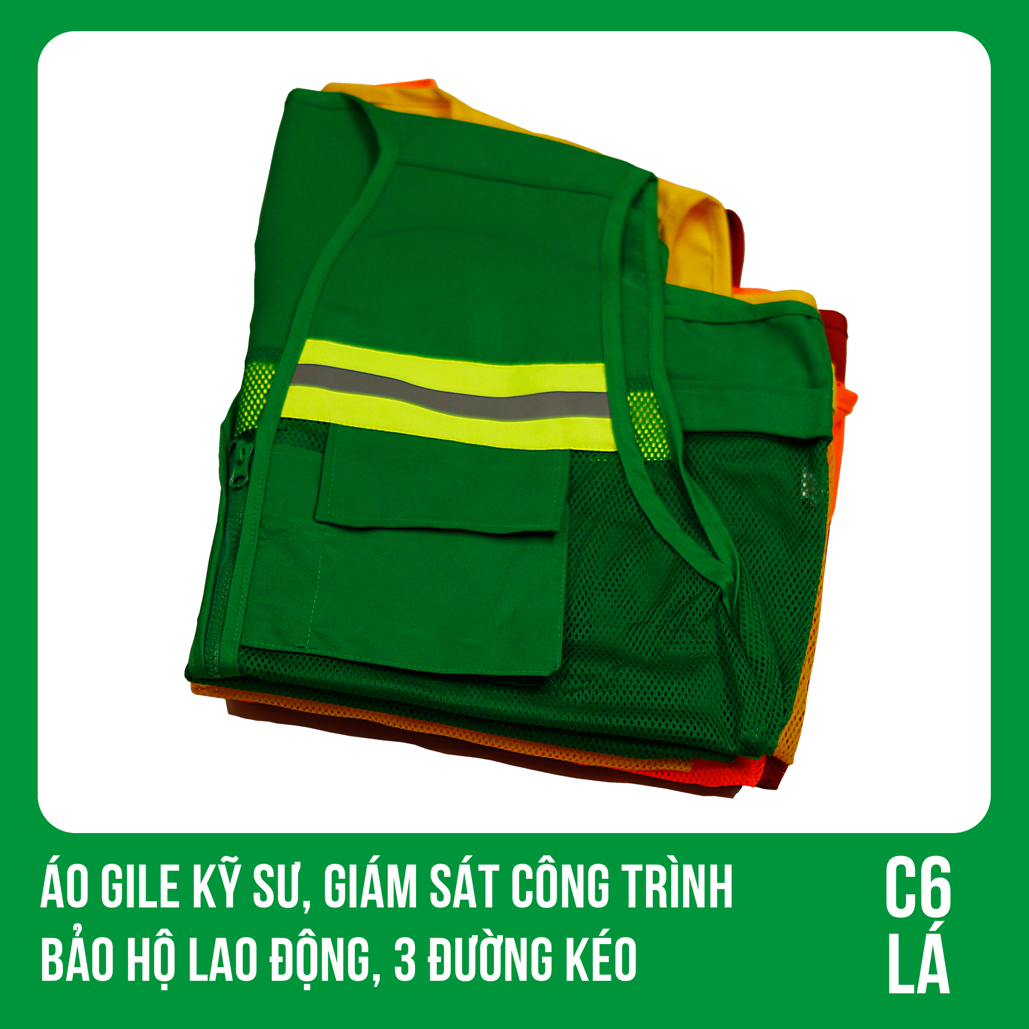 ✨Áo Gile Kỹ Sư, Giám Sát Công Trình, Bảo Hộ Lao Động, 3 Đường Kéo - Mã C6 ( LÁ )