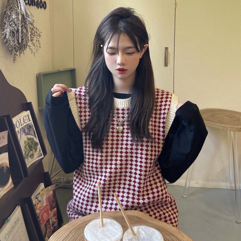 Áo len gile họa tiết caro kiểu dáng hàn quốc phối siêu xinh A521