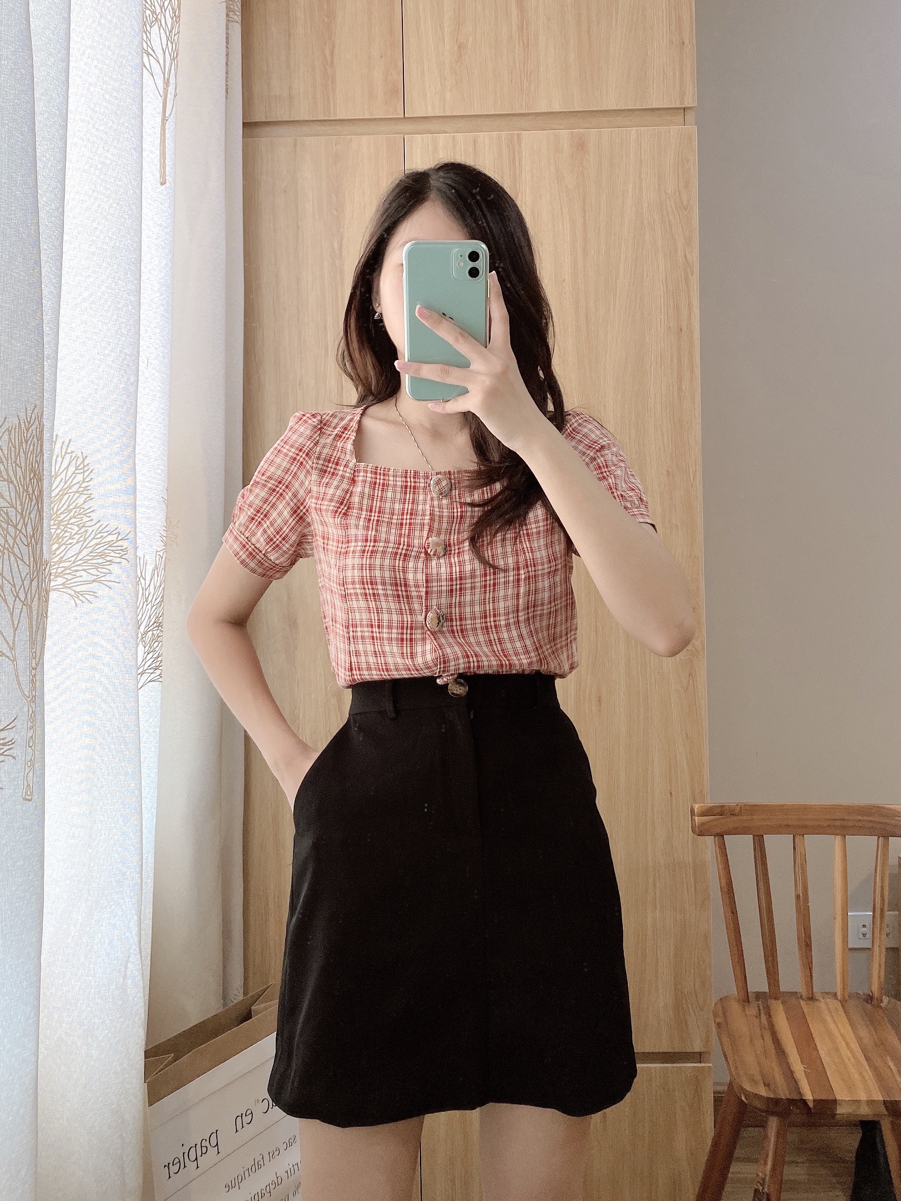 --------------- CHI TIẾT SẢN PHẨM ✿ Sản phẩm : Áo dáng babydoll nữ caro phối ren dáng babydoll tiểu thư Erina Miều Est.2013 ✿ Chất liệu : Linen Caro ✿ Màu sắc : XANH CARO