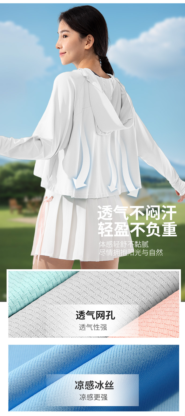 Chất liệu chống UV: Sử dụng chất liệu cao cấp có khả năng chống tia UV độc đáo, giúp bảo vệ làn da khỏi tác động có hại của ánh nắng mặt trời.