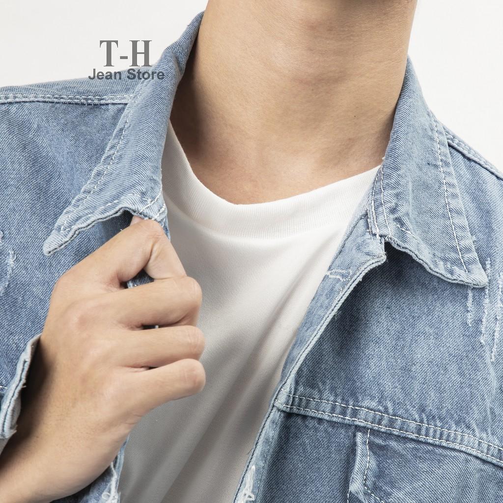 ✨Áo khoác jean nam màu xanh cơ bản cào xước, áo bò thời trang cho nam