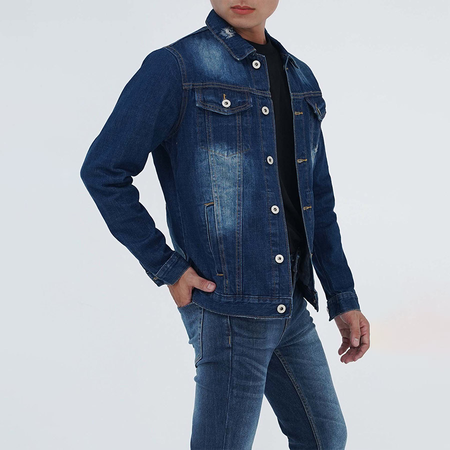 Thông tin chi tiết của sản phẩm áo khoác jean nam màu xanh cơ bản cào xước - Xuất xứ: Việt Nam - Chất liệu : Jean dệt cực chuẩn, không nhăn, có độ bền