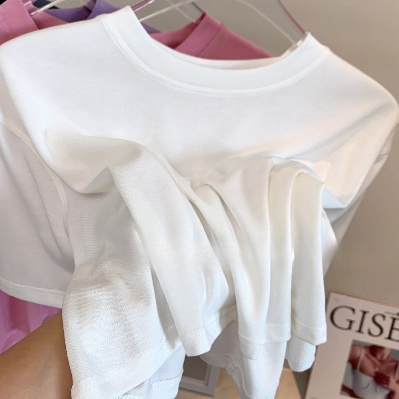 Mua tại TiktokÁo phông crop top dáng ngắn lửng màu trắng siêu mát cho nữ