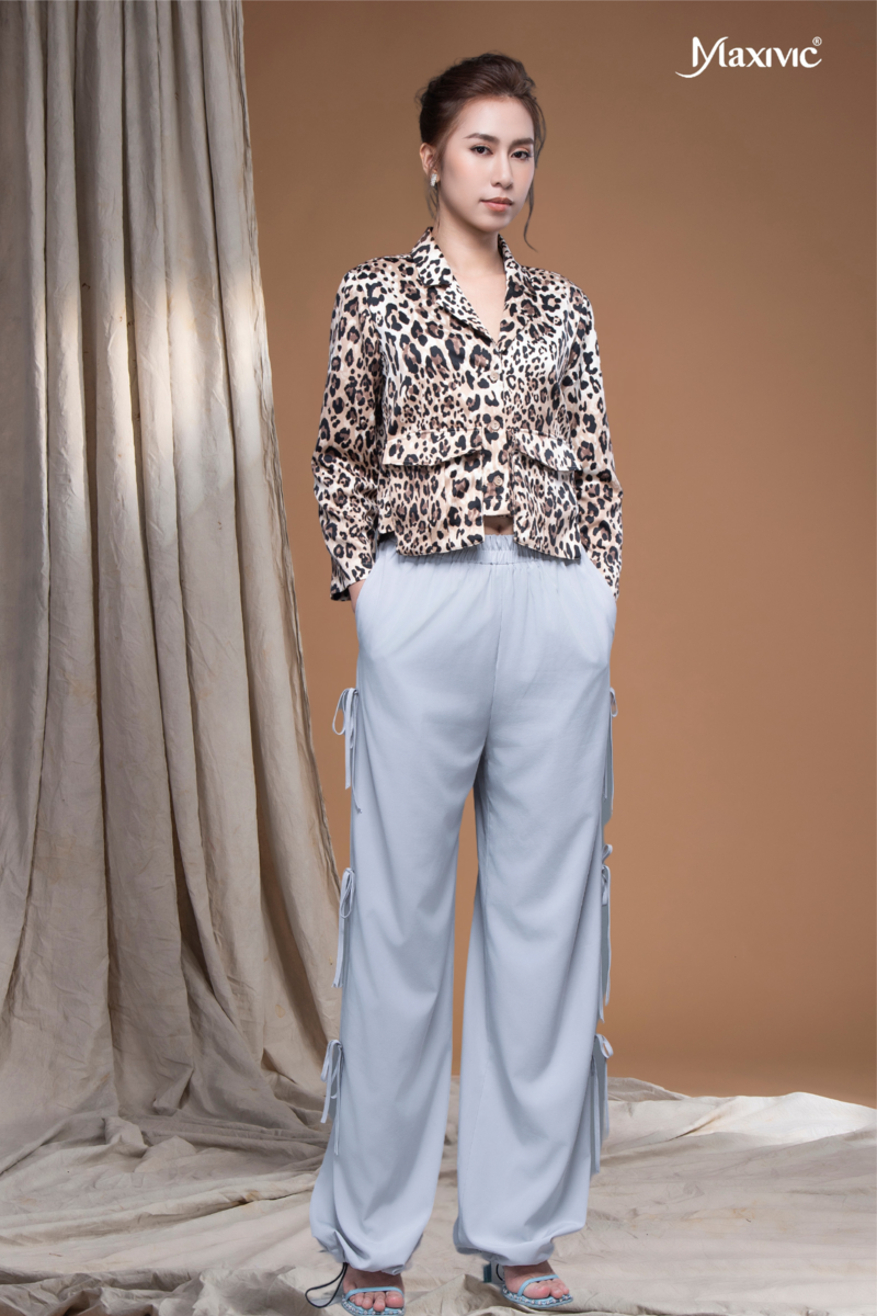 Áo sơ mi La Mộc họa tiết da beo thể hiện được nữ quyền. Thiết kế tay lỡ phồng và nhún nhẹ mang đến cảm giác thanh lịch cho nàng. Thiết kế với sự chỉnh