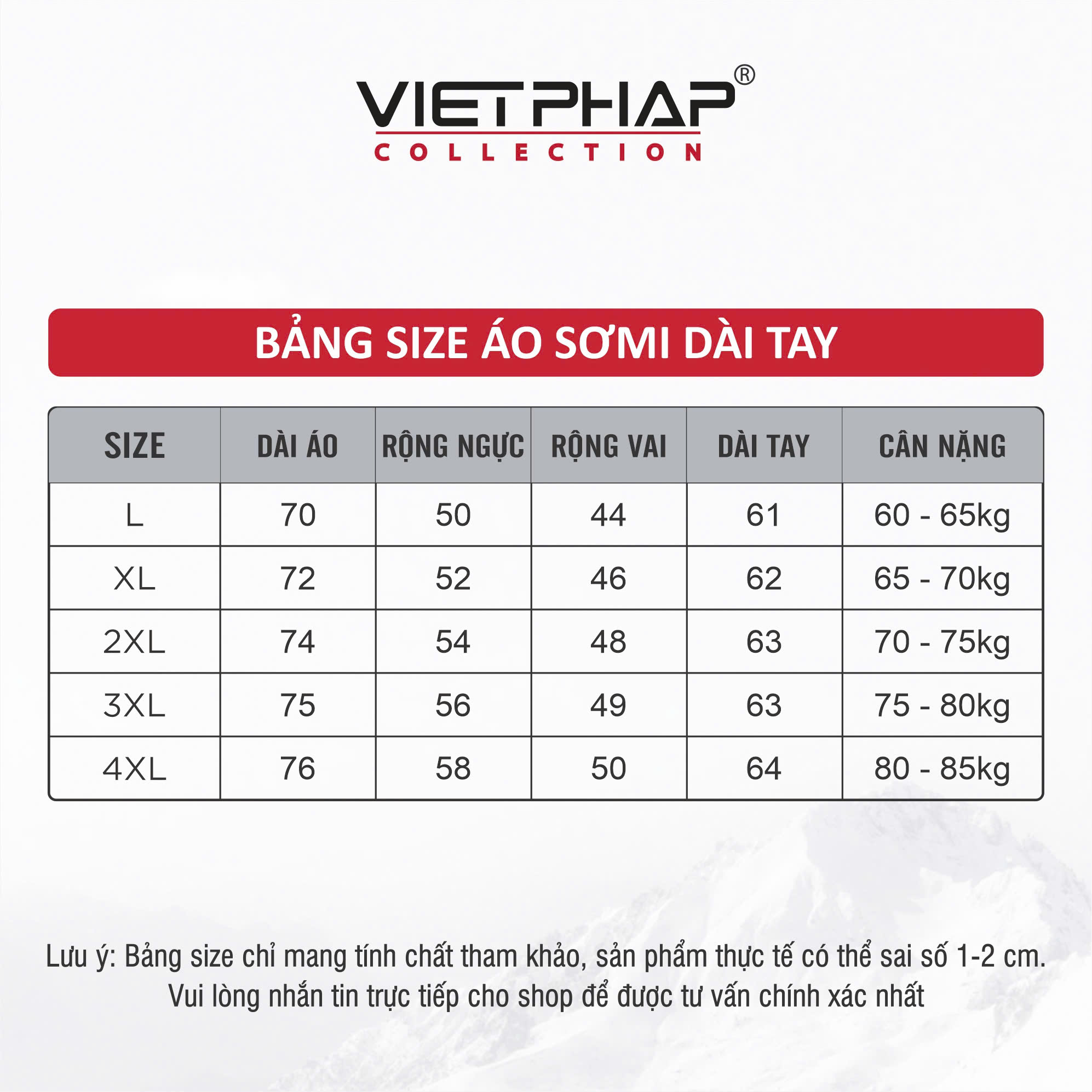 - Đổi trả hàng theo đúng quy định của Tiki VietPhap Collection Sản xuất tại: CTY TNHH May Mặc – Thời Trang Việt Pháp Cùng bạn làm nên phong cách! LƯU Ý: - Bảng size chart chỉ mang tính chất tham khảo, tùy thuộc vào số đo cơ thể mỗi người và chất liệu vải khác nhau sẽ có sự chênh lệch nhất định từ 1 - 2cm.