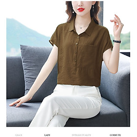 - Tên sản phẩm: Áo sơ mi nữ tay ngắn, áo kiểu nữ, chất liệu Đũi tơ mềm mát, form trẻ trung, năng động.