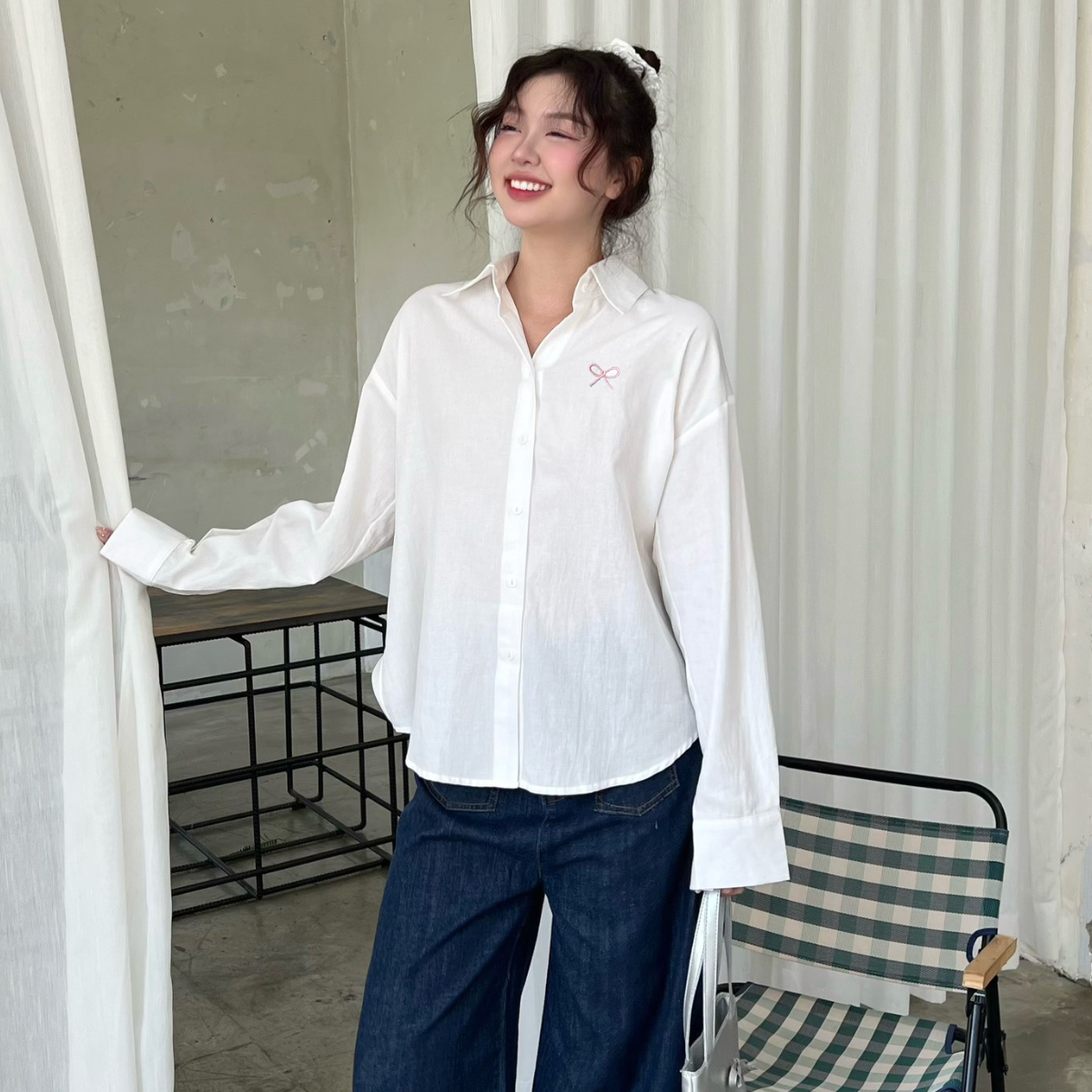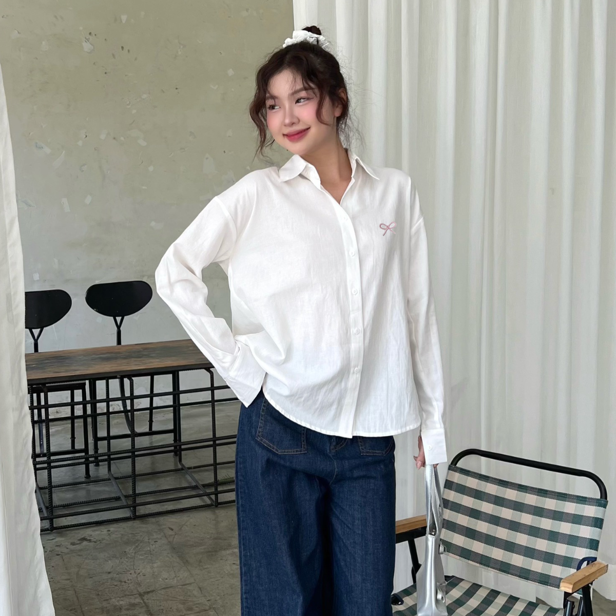 - Sản phẩm : Áo sơ mi nữ thêu nơ trẻ trung nữ tính thích hợp đi làm đi chơi Bow Miều Est.2013