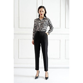 ✨Áo sơ mi nữ Tri'C Luxury họa tiết tay dài Đen S011119