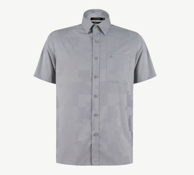 Áo sơ mi nam tay ngắn lai ngang – Khatoco - Mã hàng: A1MN498T2 - Chất liệu: - 77% Polyester (Microfiber) - 19% Viscose (Modal) - 4% Spandex → Vải cao cấp, mềm mại, thấm