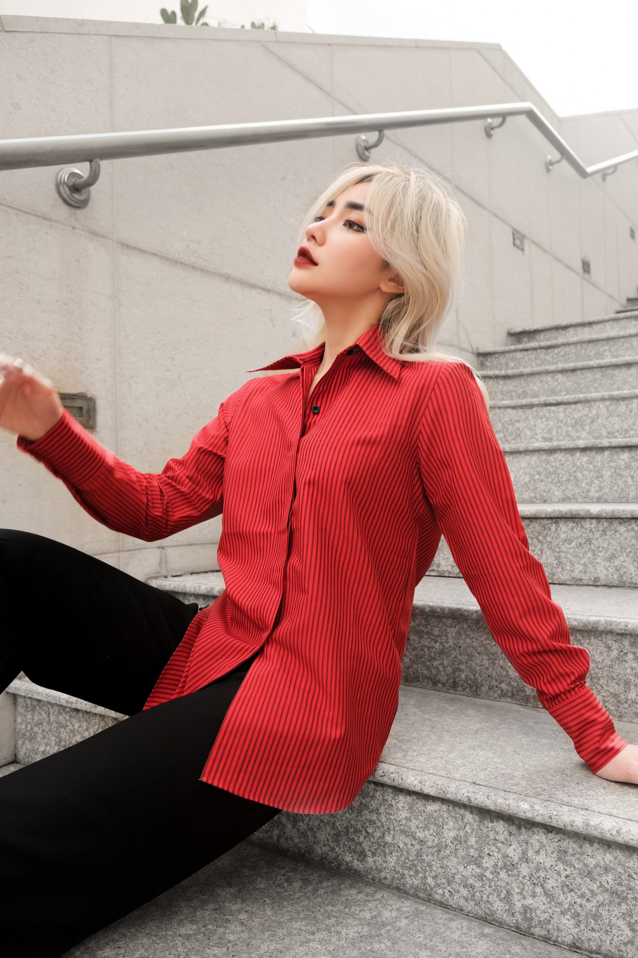 ✨Áo somi giấu nút sọc đỏ