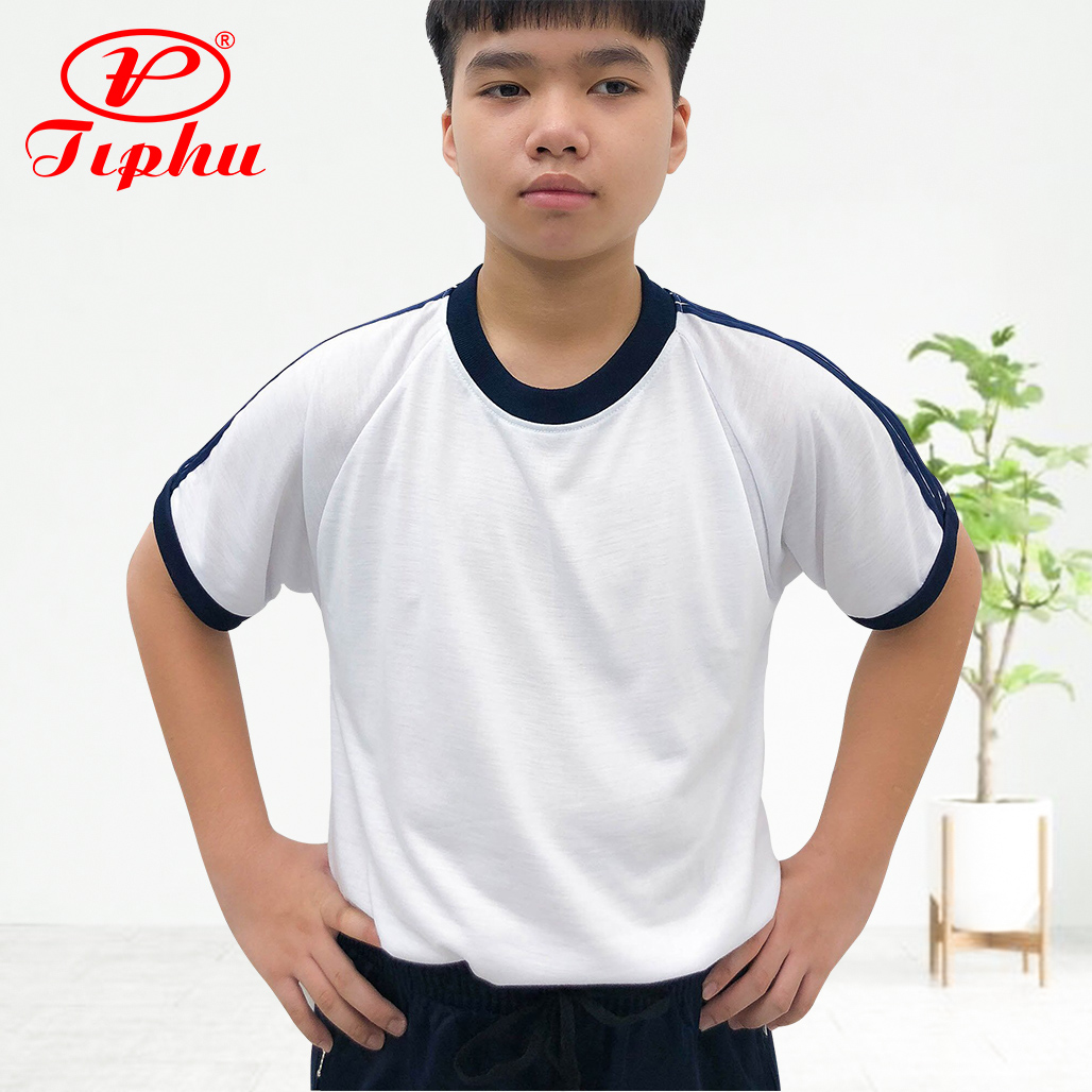 - Áo thun đi học nền trắng phối xanh