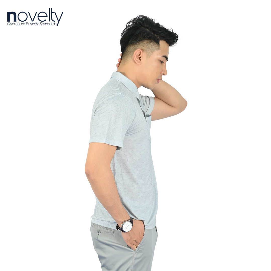 'Áo thun nam Polo NOVELTY kiểu dệt sọc Melange mới lạ, đẹp mắt. Chất vải siêu nhẹ, mỏng mát nhưng không kém phần tinh tế. Phù hợp với nhiều độ tuổi, phong cách. Có khả