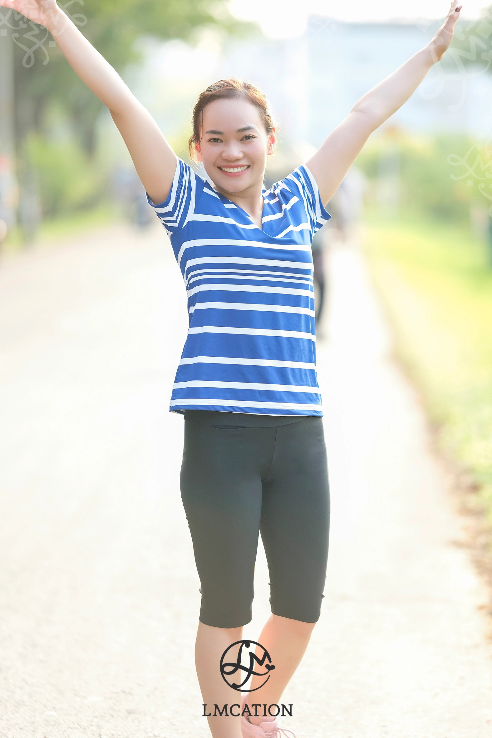 ✨Áo thun thể thao đa năng LMcation Hadley - Xanh sọc trắng