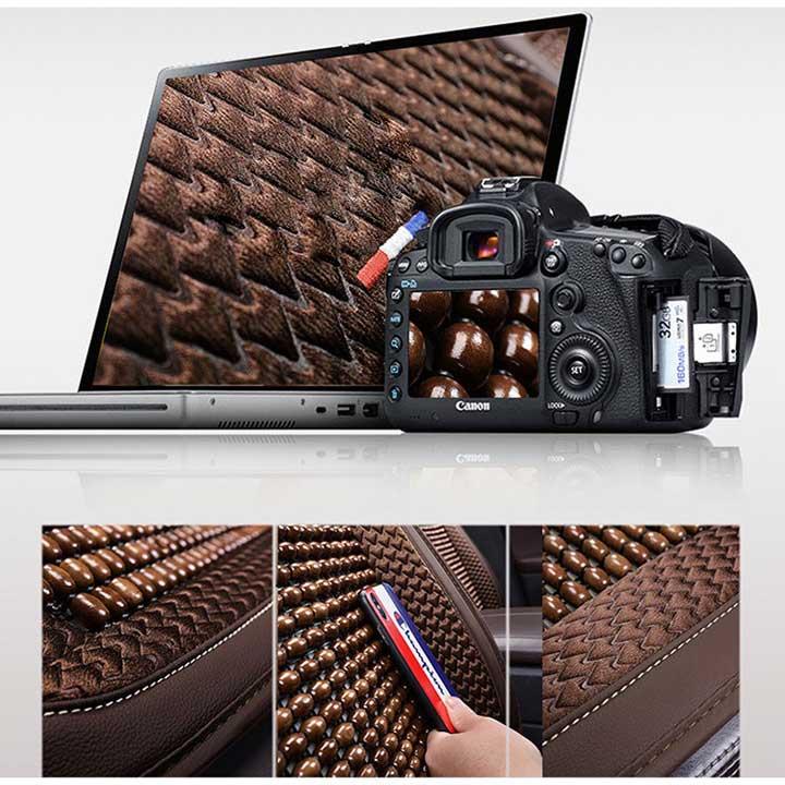 - Chất liệu sản phẩm: Được làm từ da PU và những viên hạt gỗ tự nhiên massage + lưới siêu thoáng khí - chống trơn trượt