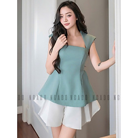 ✨Áo xanh mint chiết eo NGADO , áo kiểu , áo chiết eo