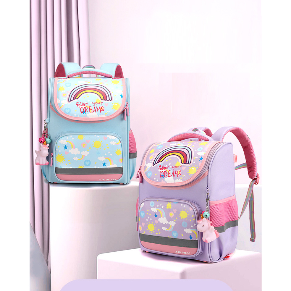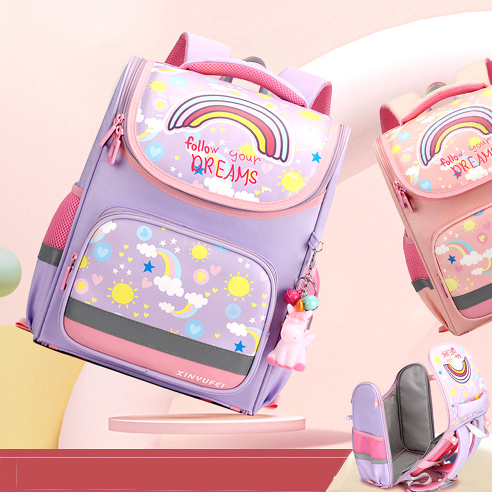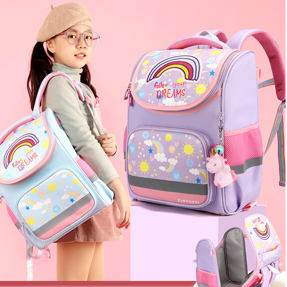 BALO học sinh cấp 1-2 giá sale sập sàn 100k, ba lô cặp sách cho bé gái chống gù màu loang cầu vồng
