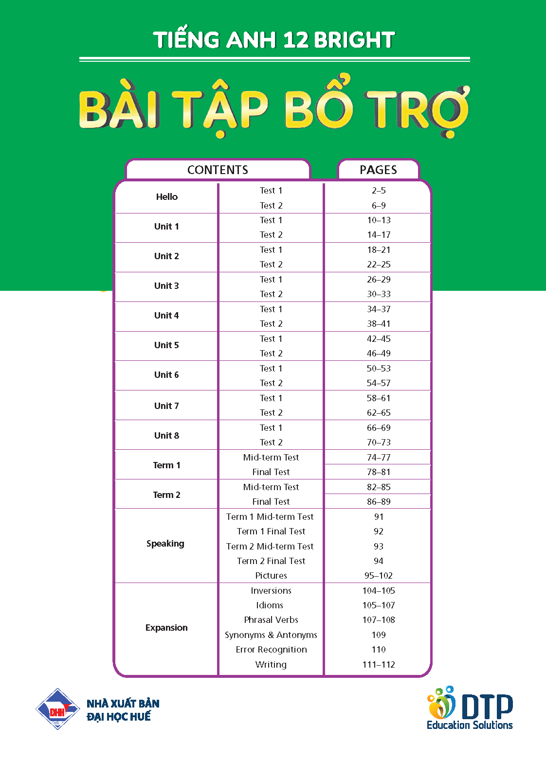 Sách bài tập bổ trợ Tiếng Anh 12 Bright được biên soạn với mục tiêu mang đến cho các em học sinh nguồn bài tập bổ trợ phong phú theo sát chương trình học. Các