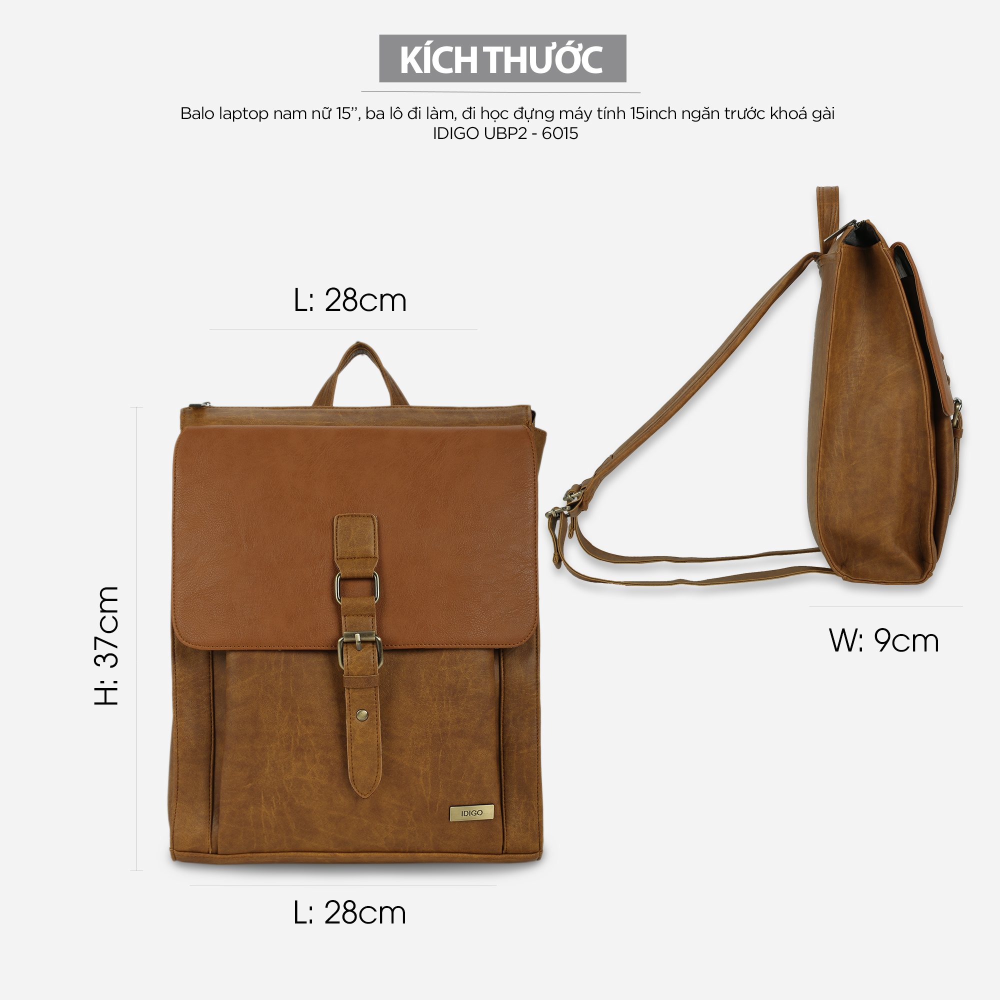Balo Da Nam Nữ Đựng Laptop 15 Inch Thời Trang Ngăn Trước Khoá Gài IDIGO UBP2 - 6015
