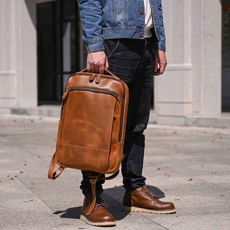 Balo nam da bò thật BHM9197 Ba lô laptop 14inch