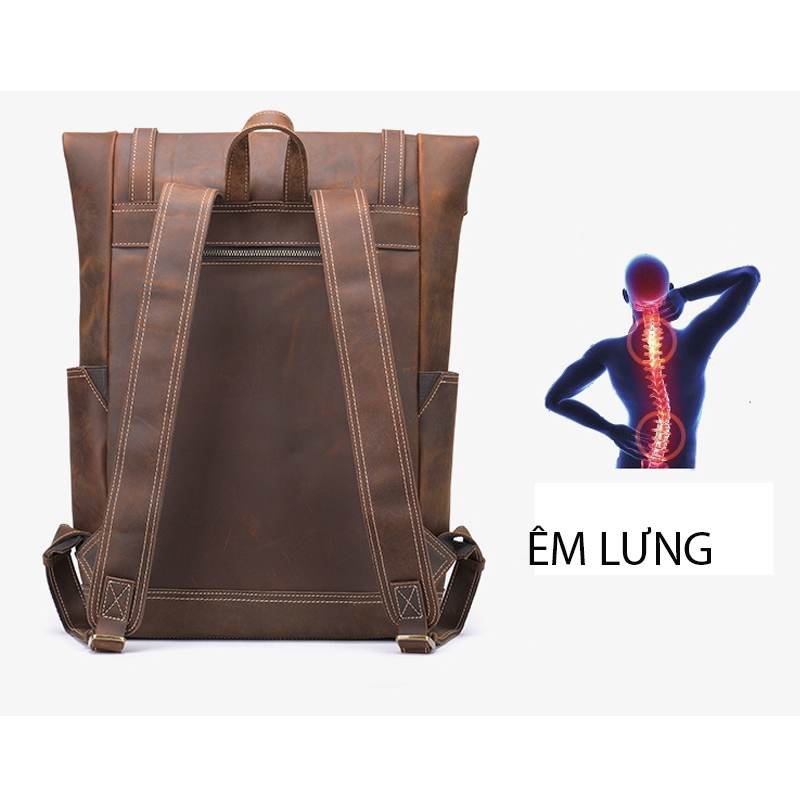 Ba lô nam da bò thật BHM9251 Vừa laptop 13.3inch