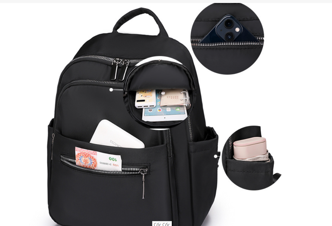 Kích thước túi: Trung bình Công suất: 20-35L Cấu trúc bên trong túi: Túi điện thoại di động, Túi tài liệu Mở nắp: dây kéo Chất liệu: Nylon Đã khóa hay không: Không Che mưa
