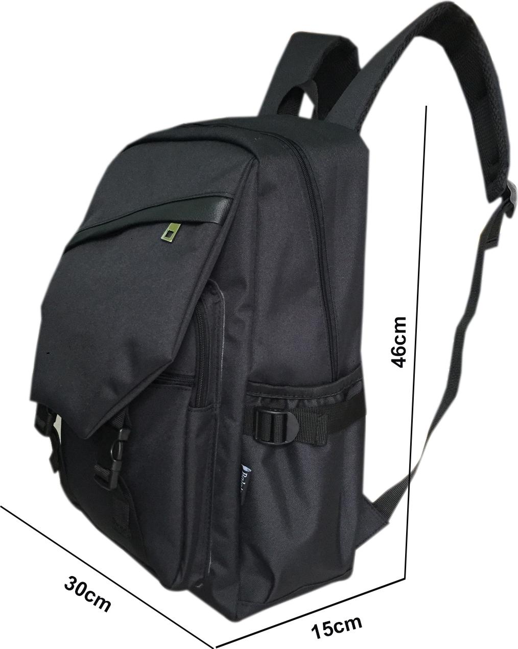 Kích thước: 46cm x 30cm x 15cm rộng rãi, được chia làm nhiều ngăn tiện lợi. Có các ngăn lớn để đựng các vật dụng cần thiết và nhiều ngăn nhỏ để đựng giấy tờ, tiền, ví… tiện dùng khi đi học, làm việc, hai bên hông có ngăn đựng nước tiện dụng khi di chuyển ngoài trời. Bên trong ngăn chính có tích hợp ngăn mút đựng laptop.